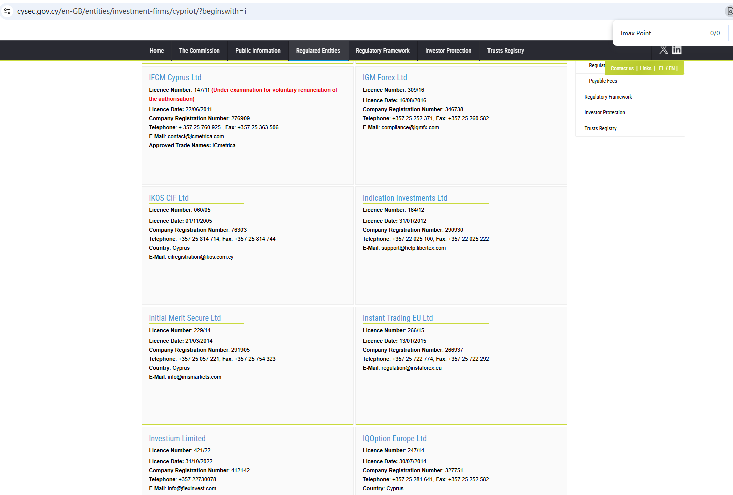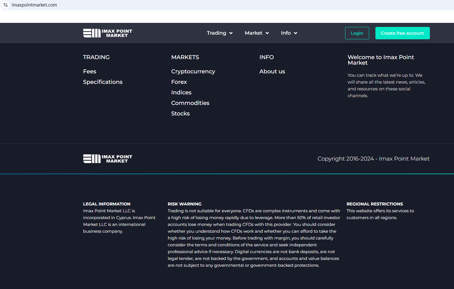 In essence, Imax Point Market is not regulated by any governing body. Entrusting it with investors' funds is highly risky, as there are no legal protections in place to safeguard the funds.
