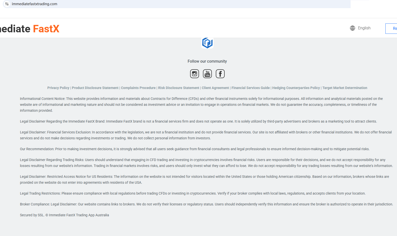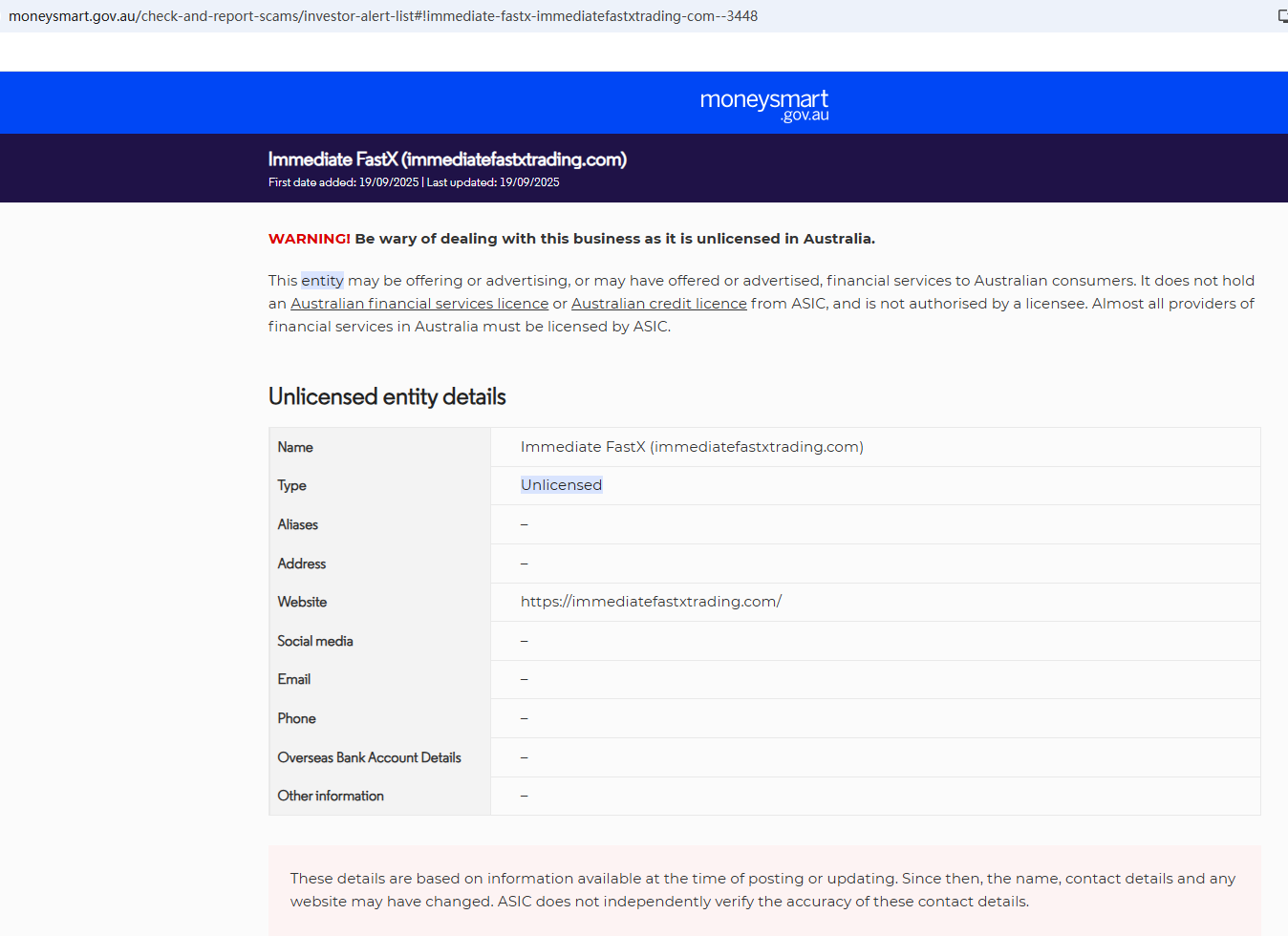 On Sept 19, 2025, the Australian Securities & Investments Commission (ASIC) issued a warning against Immediate FastX, believing this company might be providing financial services or products without proper authorization. https://moneysmart.gov.au/check-and-report-scams/investor-alert-list#!immediate-fastx-immediatefastxtrading-com--3448