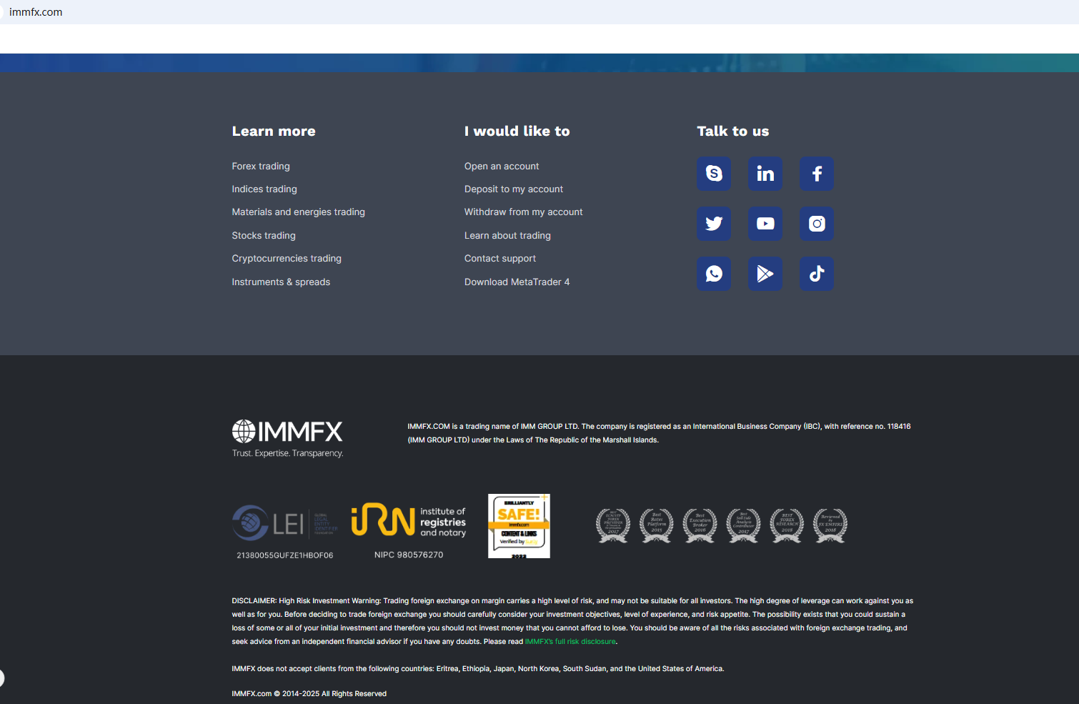 Its website claims the company is only registered with the IBC, but offers no further regulatory approval. Its previously stated that the Saint Vincent and the Grenadines Financial Services Authority (SVG FSA) registration status is now "Cancelled." Clearly, IMMFX appears to be unauthorized by any reputable financial regulator, raising serious concerns about potential fraud.