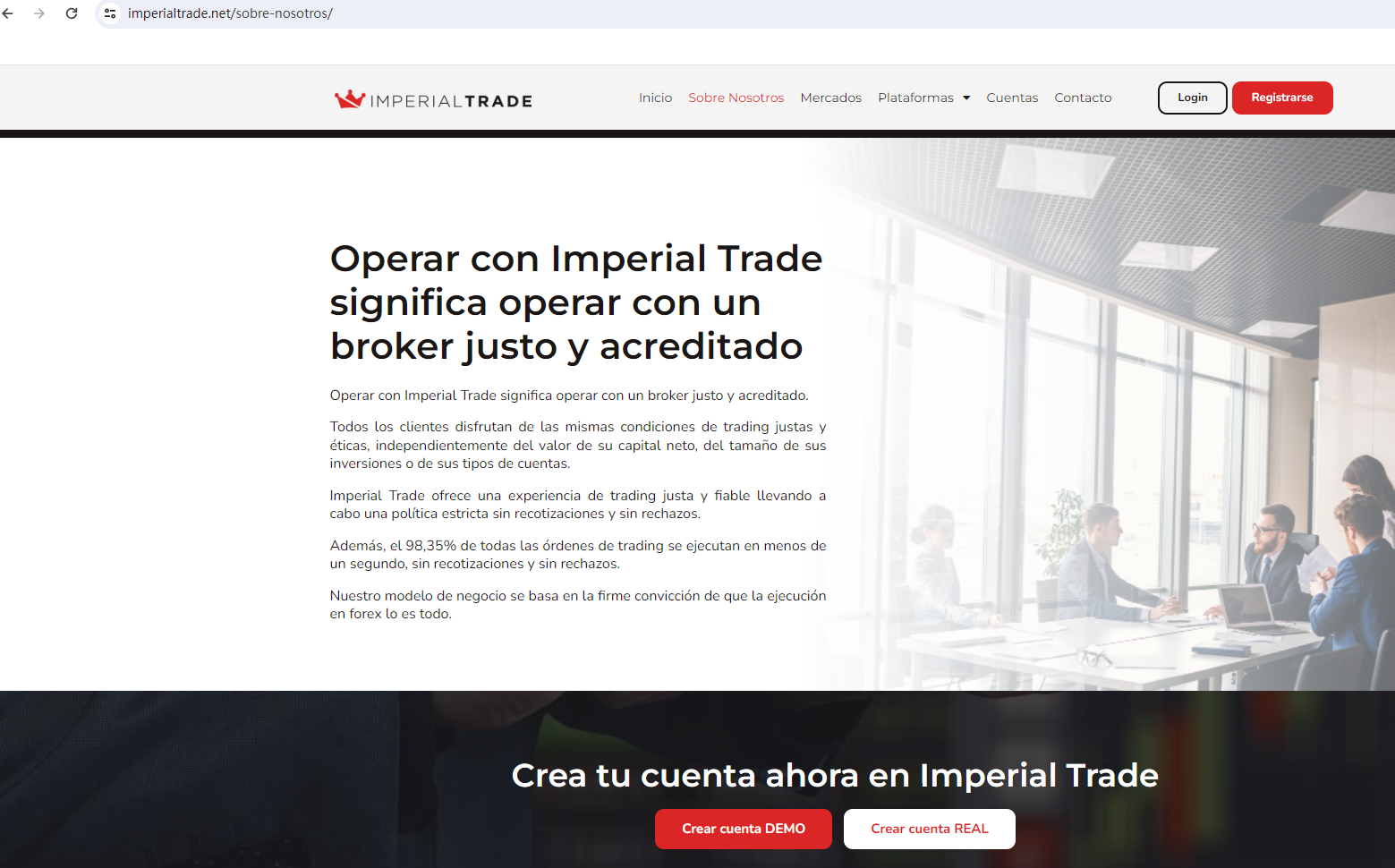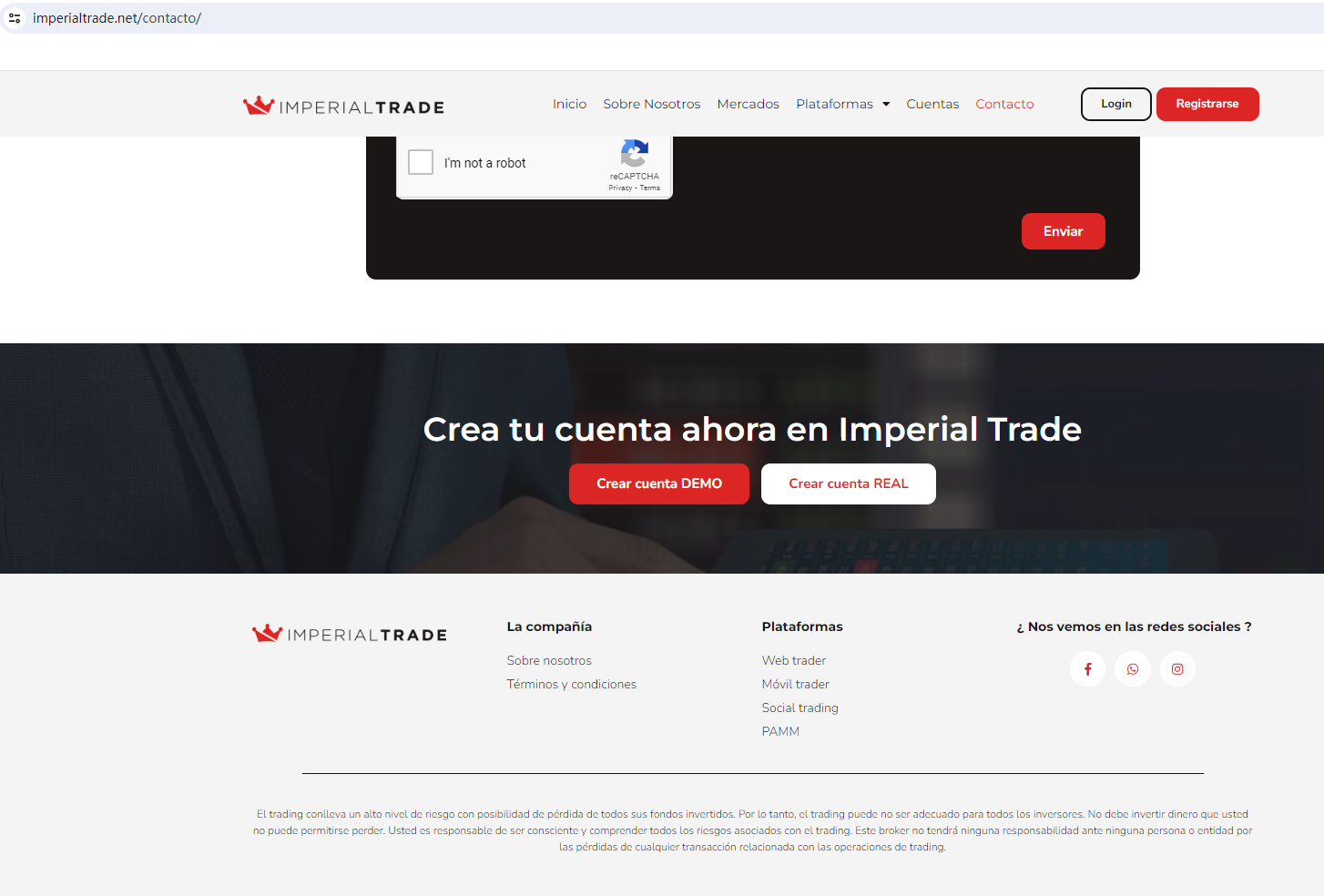 IMPERIALTRADE claims to be a reliable company without presenting any information about its regulation or contact. The lack of such important information may be a distinct signal of an unlicensed broker, as regulated companies always present their accreditations and licenses in a prominent position. It is a red flag.