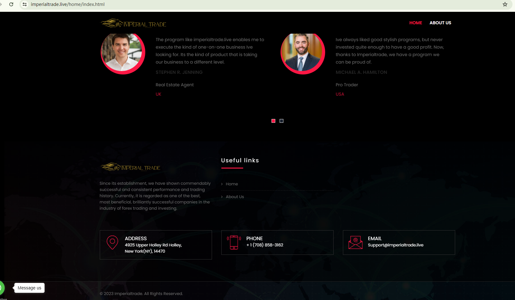 In essence, imperialtrade.live is not regulated by any governing body. Entrusting it with investors' funds is highly risky, as there are no legal protections in place to safeguard the funds.