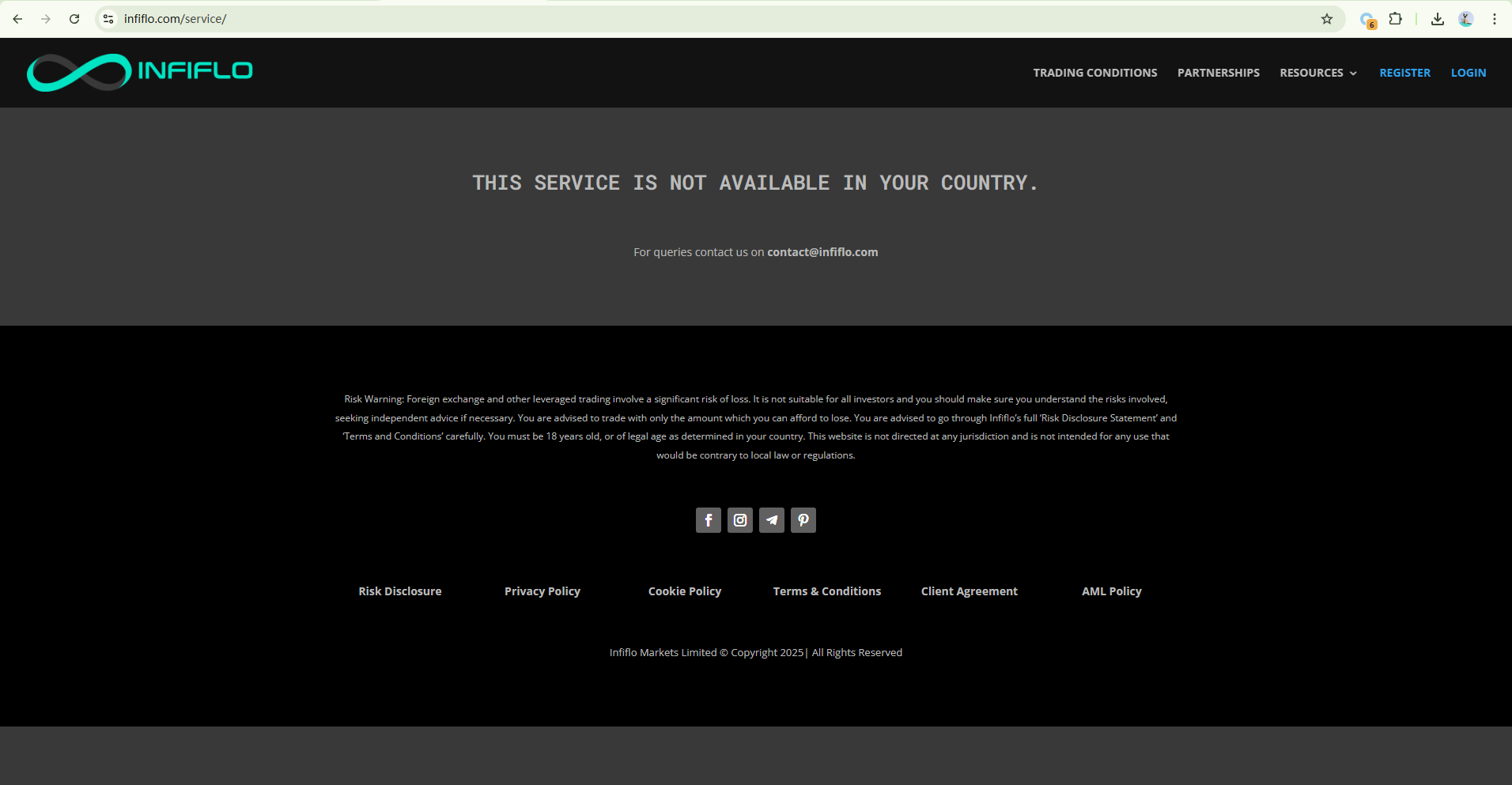 On Infiflo's website, there is no publicly available information about their regulatory status, jurisdiction of operation, registered company address, or official contact details. Such a lack of transparency raises serious red flags and may indicate a potential risk of fraudulent activity.