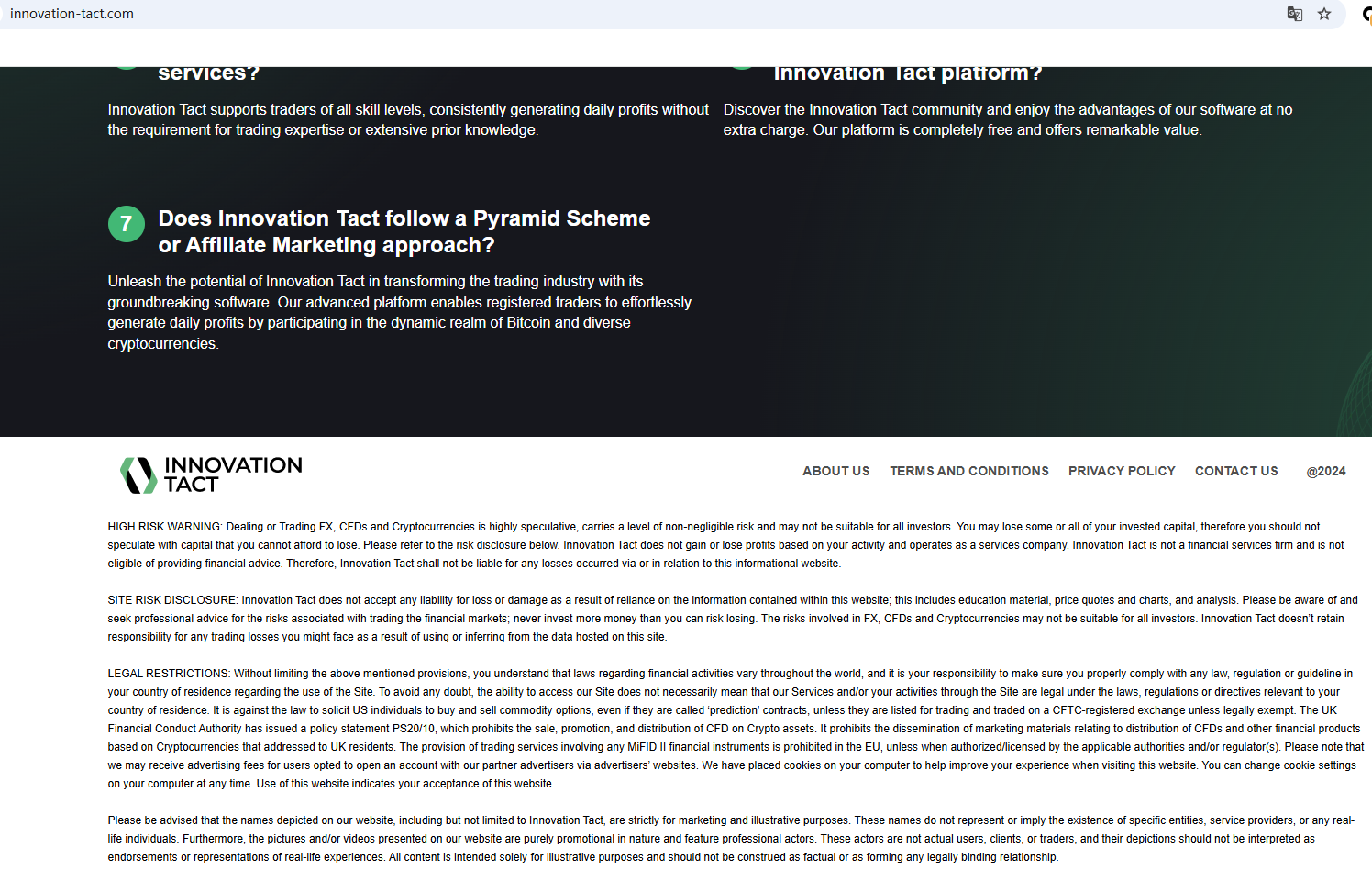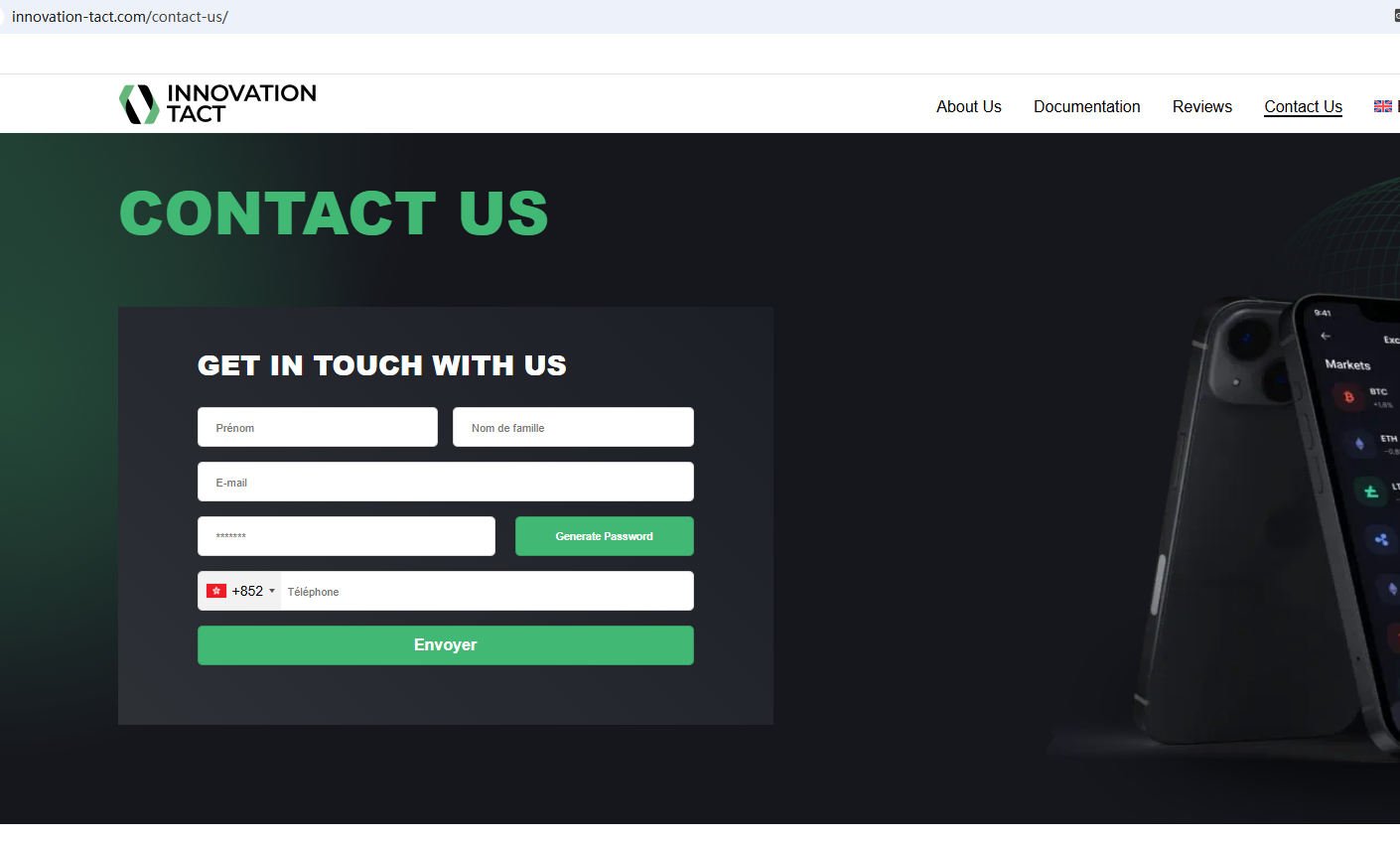 It claims to be a reliable company, but does not display any strong regulatory evidence on its website, and even the most basic office address is not disclosed, which is extremely untrustworthy. In addition, the Financial Conduct Authority (FCA) issued a warning regarding INNOVATION TACT, suspecting that this company may be offering financial services or products without the necessary authorization.
