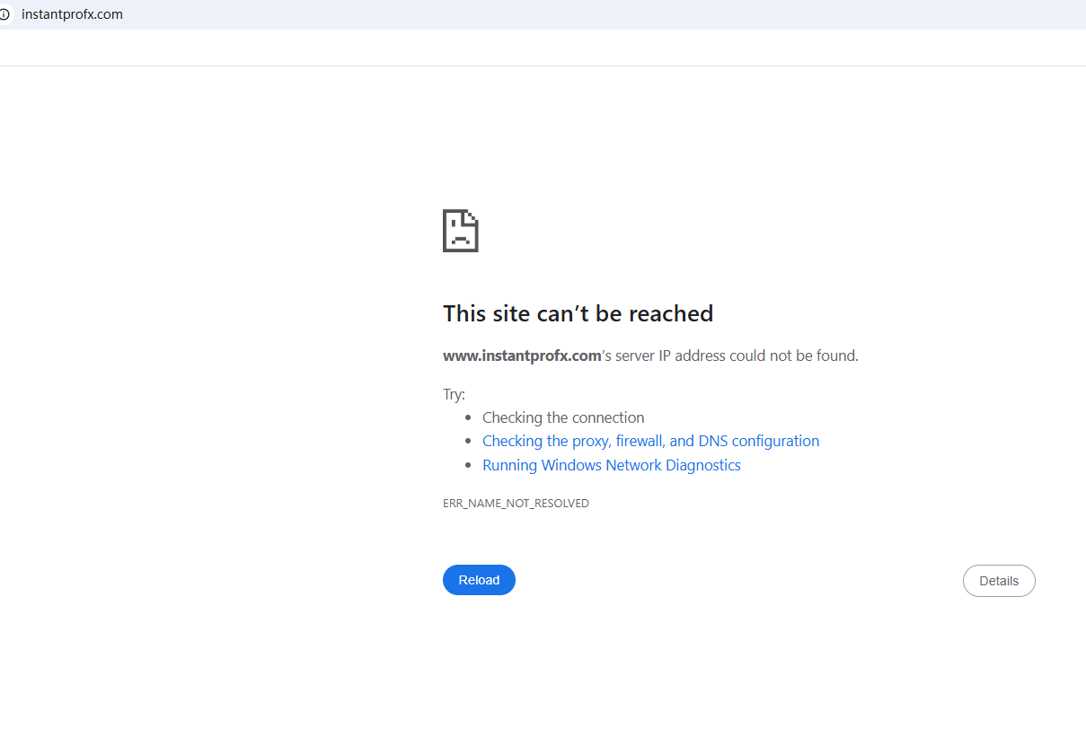 BrokersView found that the domain "https://www.instantprofx.com/" is currently inaccessible. This is widely regarded as a significant red flag, as the suspension of a broker's website often points to underlying regulatory or operational issues.