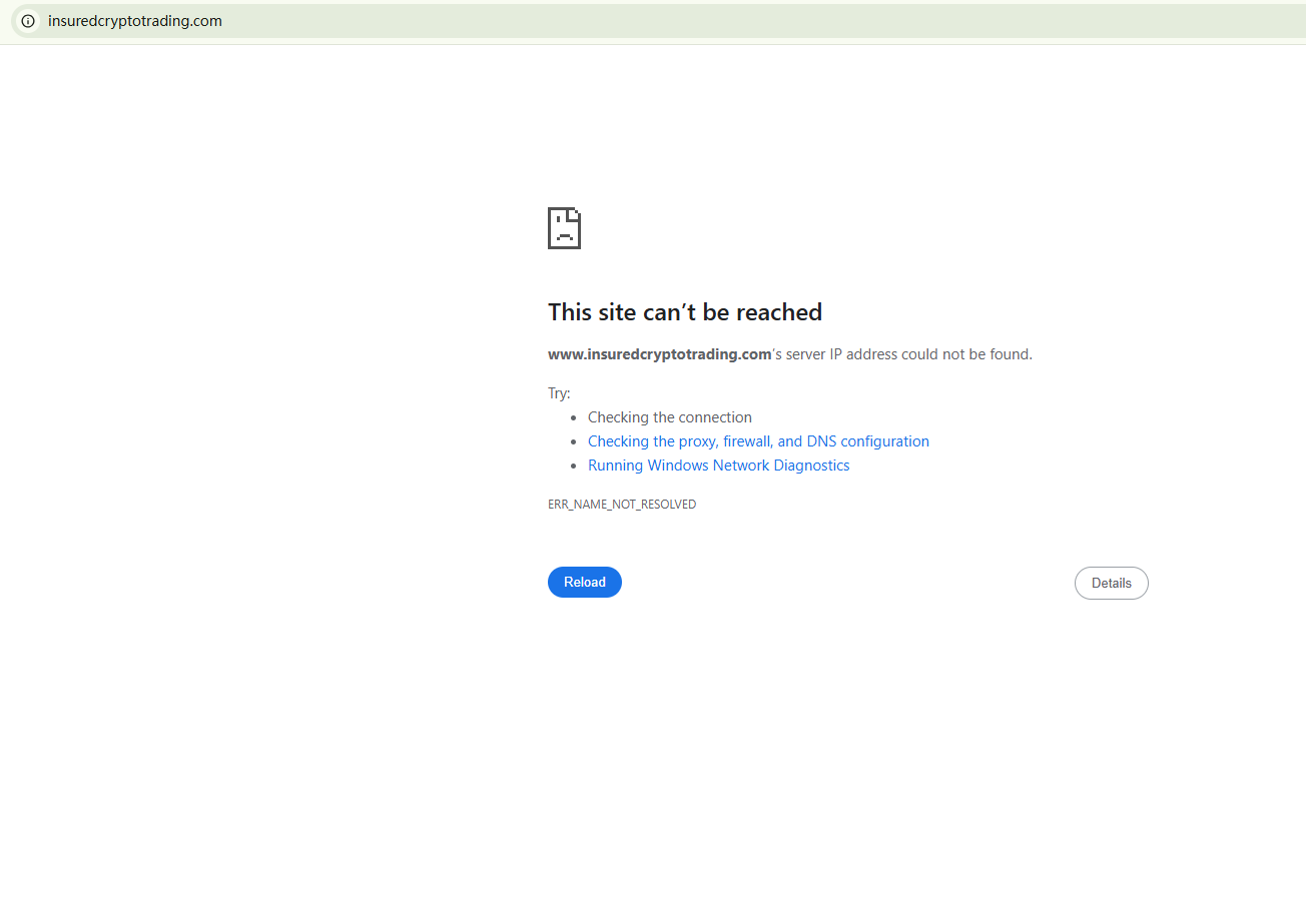 BrokersView found that the domain "https://www.insuredcryptotrading.com/" is currently inaccessible. This is widely regarded as a significant red flag, as the suspension of a broker's website often points to underlying regulatory or operational issues.