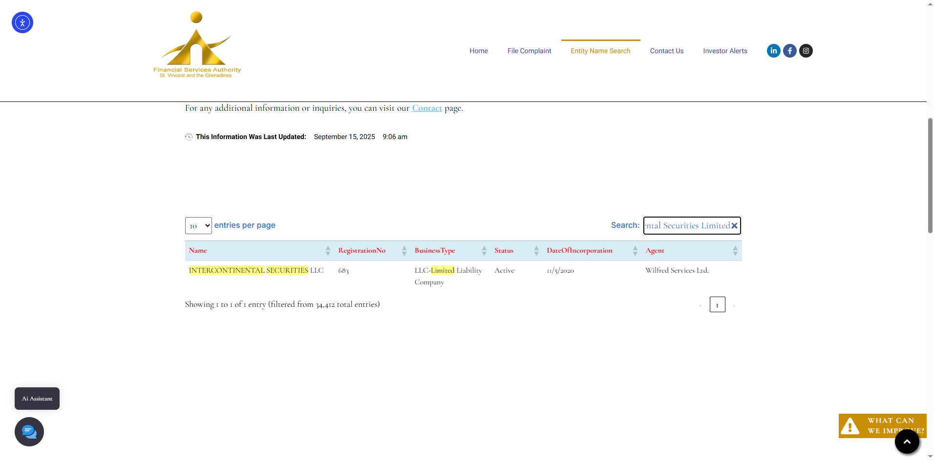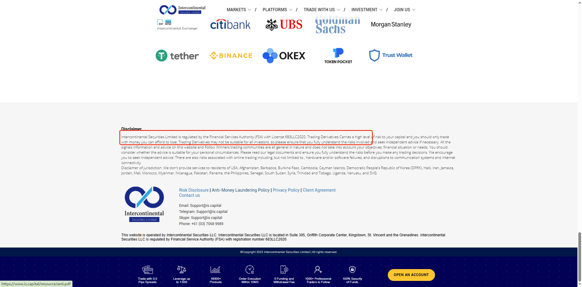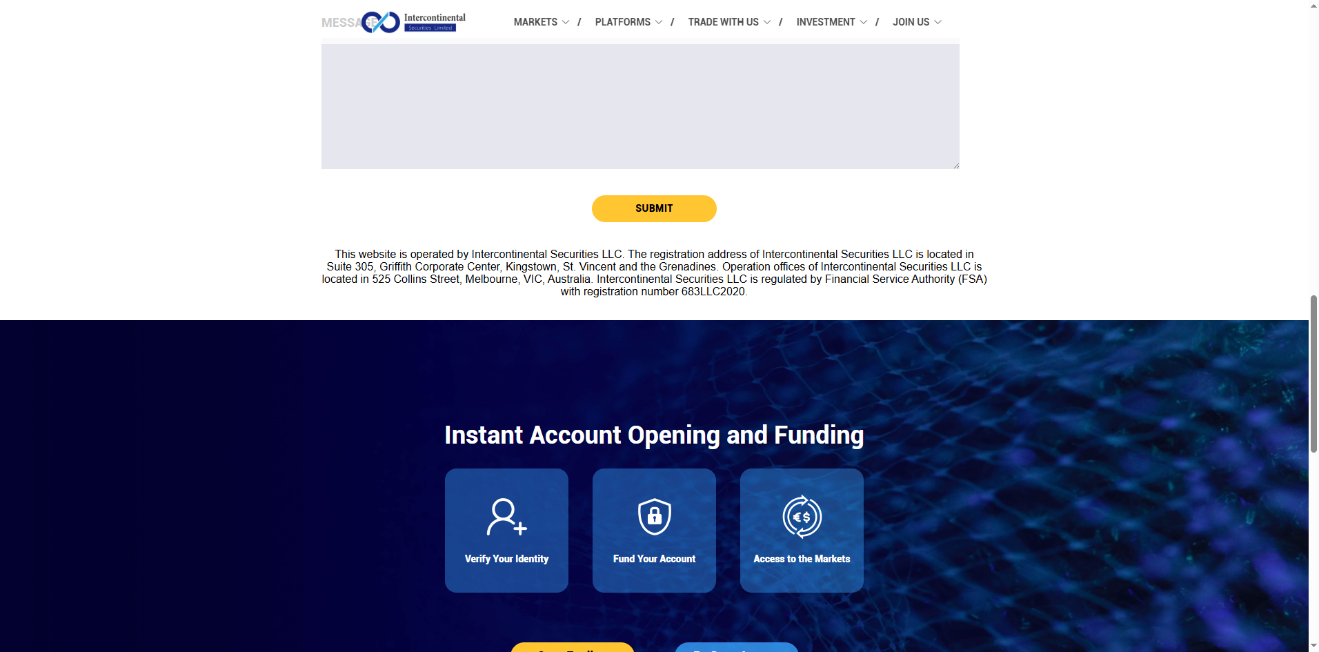 Intercontinental Securities Limited claims to be regulated by the Financial Services Authority (FSA) of Saint Vincent and the Grenadines. While we confirm that a matching company exists in the registry of SVG FSA, this only grants International Business Company (IBC) status. It does not constitute a valid financial license. The SVG FSA has clearly stated that it does not regulate or license forex brokers.