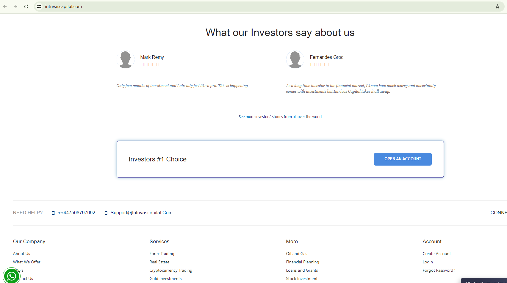 It's also unusual that the "Contact Us" link redirects investors to the login page, rather than providing contact information. The broker does not provide clear information about its company profile. The phone number provided, which starts with +44, suggests a potential office location in the UK. However, the Financial Conduct Authority (FCA) has identified INTRIVAS CAPITAL as an unauthorized firm operating in the UK.