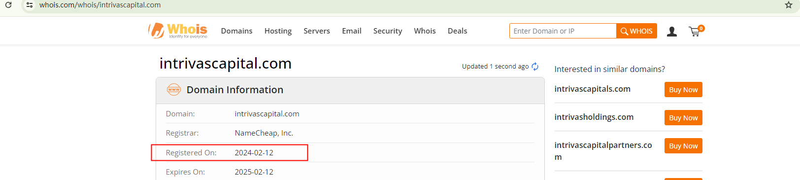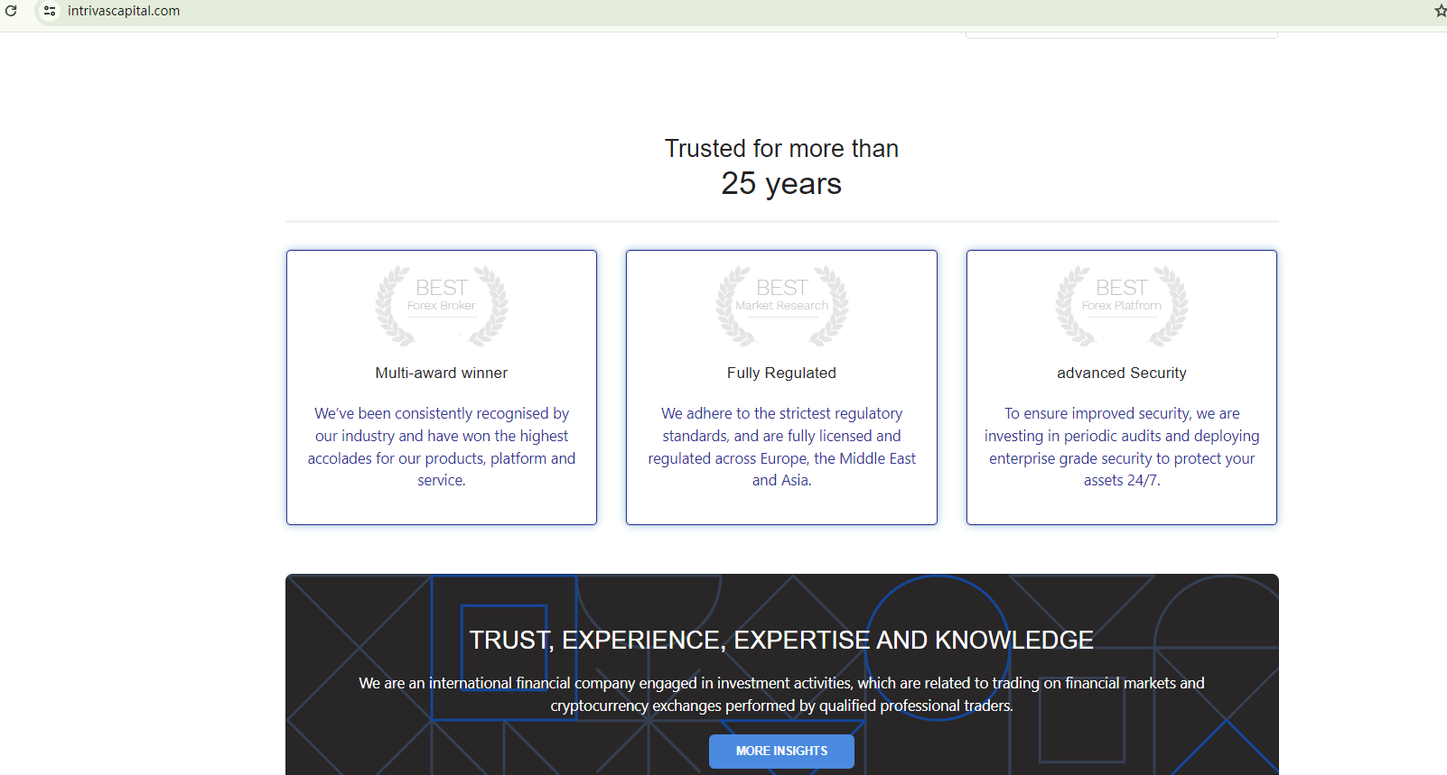 Despite its claim of being "Trusted for more than 25 years," INTRIVAS CAPITAL's domain name was only registered recently in February 2024. This discrepancy raises questions about the broker's credibility.