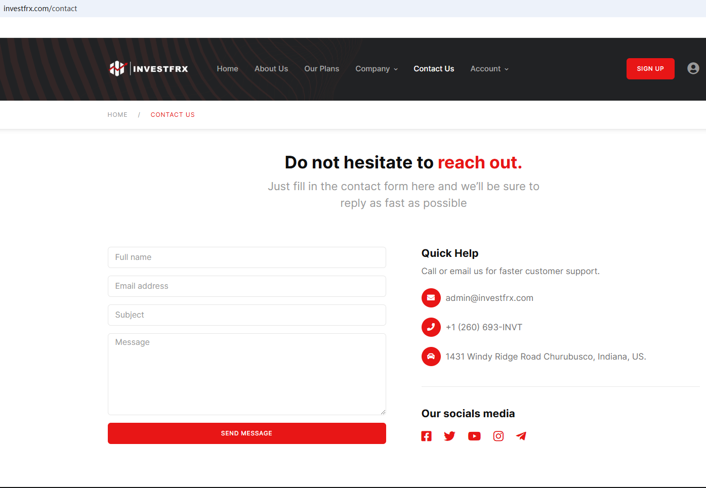 BrokersView found that the domain "https://investfrx.com/" is currently inaccessible. This is widely regarded as a significant red flag, as the suspension of a broker's website often points to underlying regulatory or operational issues.