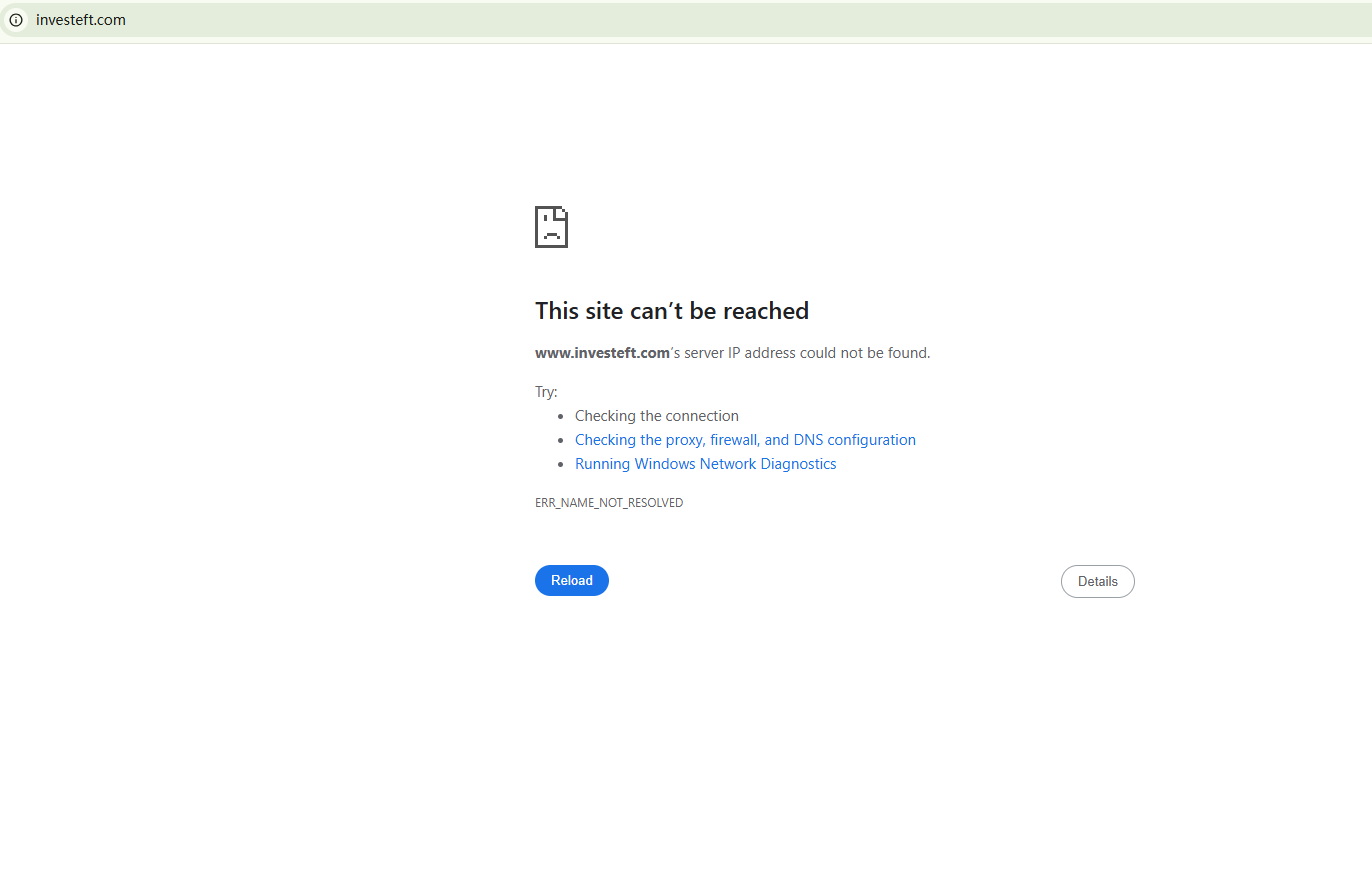 BrokersView found that the domain "https://www.investeft.com/" is currently inaccessible. This is widely regarded as a significant red flag, as the suspension of a broker's website often points to underlying regulatory or operational issues.