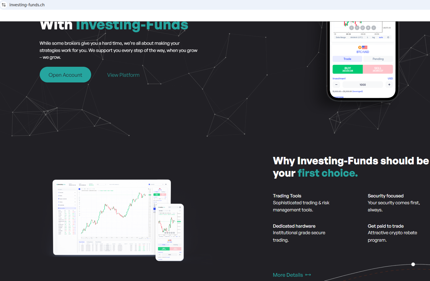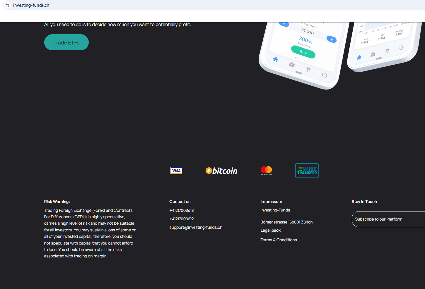 The website uses a common template for scam websites and has been flagged by Brokersview many times before. It claims to be a reliable broker but does not display any valid regulatory information on the website for inquiry. It provides a phone number with an area code starting with +41 on the website, which means that the number belongs to Switzerland. However, after checking, it was found that the Swiss Financial Market Supervisory Authority (FINMA) issued a warning against Investing Funds, stating that this broker is not entered in its commercial register.