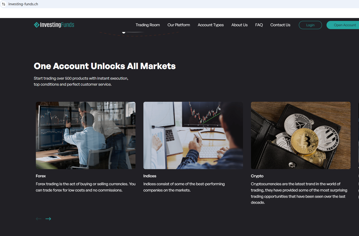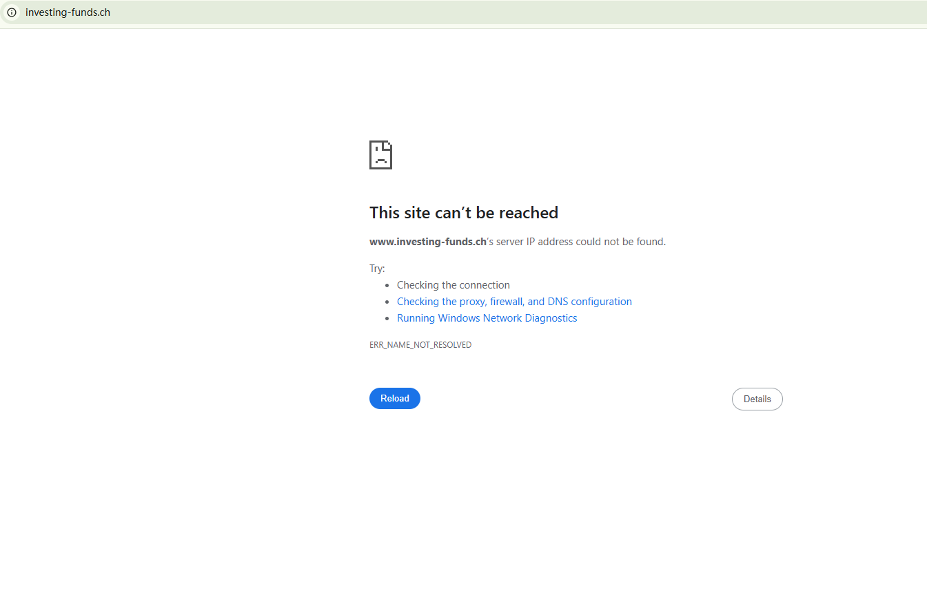 BrokersView found that the domain "https://www.investing-funds.ch/" is currently inaccessible. This is widely regarded as a significant red flag, as the suspension of a broker's website often points to underlying regulatory or operational issues.