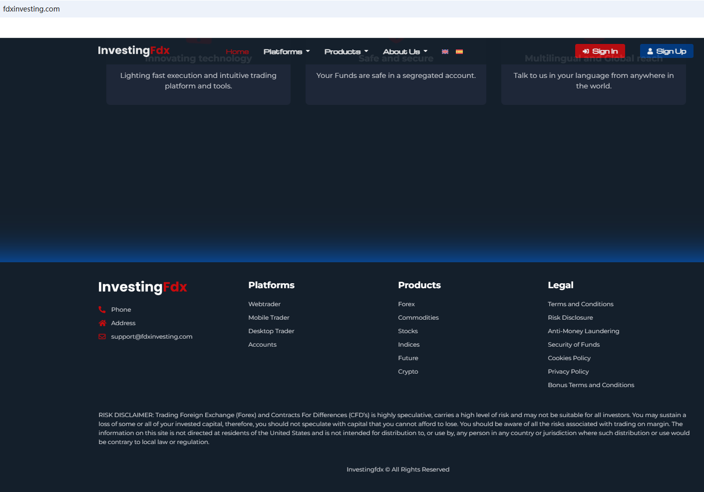 The truth is that Investingfdx is not regulated by any regulators. Letting it hold or control investors' money is unsafe, and the money can not be protected by any laws. Investingfdx is a scam.