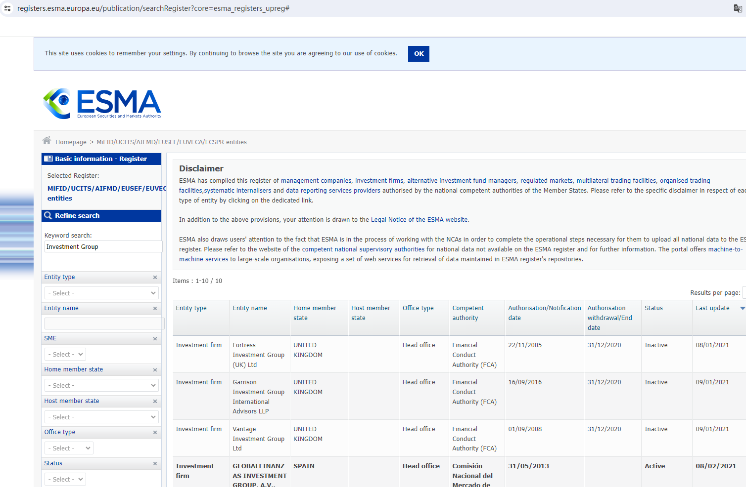 According to its website, it claims to be regulated by the European Financial Authority. Upon investigation, no matching information was found in the European Securities and Markets Authority (ESMA).