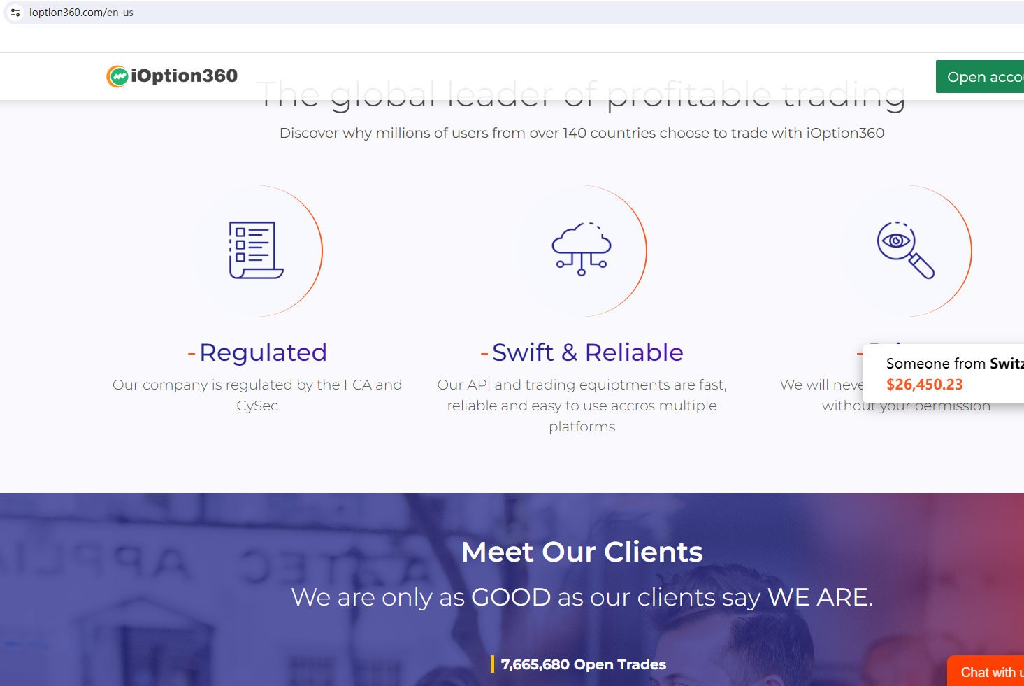 According to its website, it claims regulated by the Financial Conduct Authority (FCA) and Cyprus Securities and Exchange Commission (CySEC). Upon investigation, no matching information was found in the FCA. What's more, the Cyprus Securities and Exchange Commission (CySEC) issued a warning that iOption360 was providing financial services or products without authorisation.