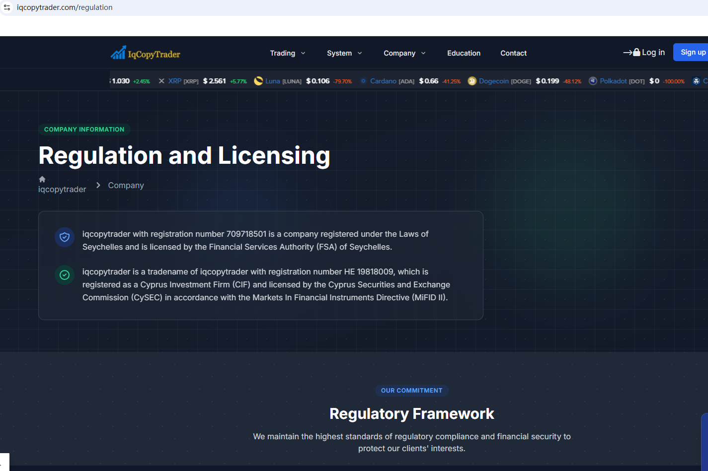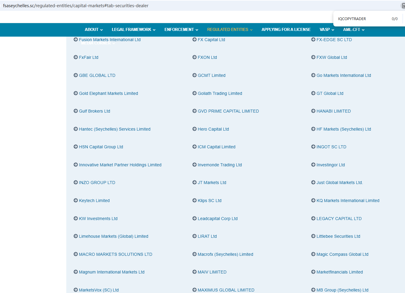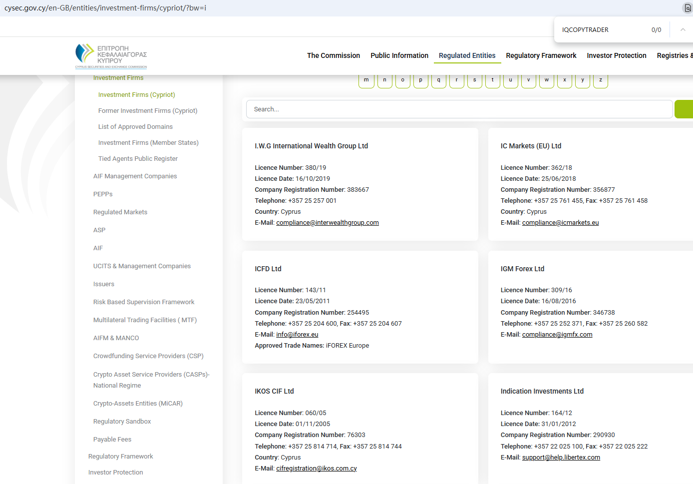 According to its website, it claims to be regulated by the Seychelles Financial Services Authority (Seychelles FSA) and the Cyprus Securities and Exchange Commission (CySEC). Upon investigation, no matching information was found in the Seychelles FSA and CySEC. In addition, the Financial Conduct Authority (FCA) issued a warning regarding IQCOPYTRADER, suspecting that this company may be offering financial services or products without the necessary authorization.