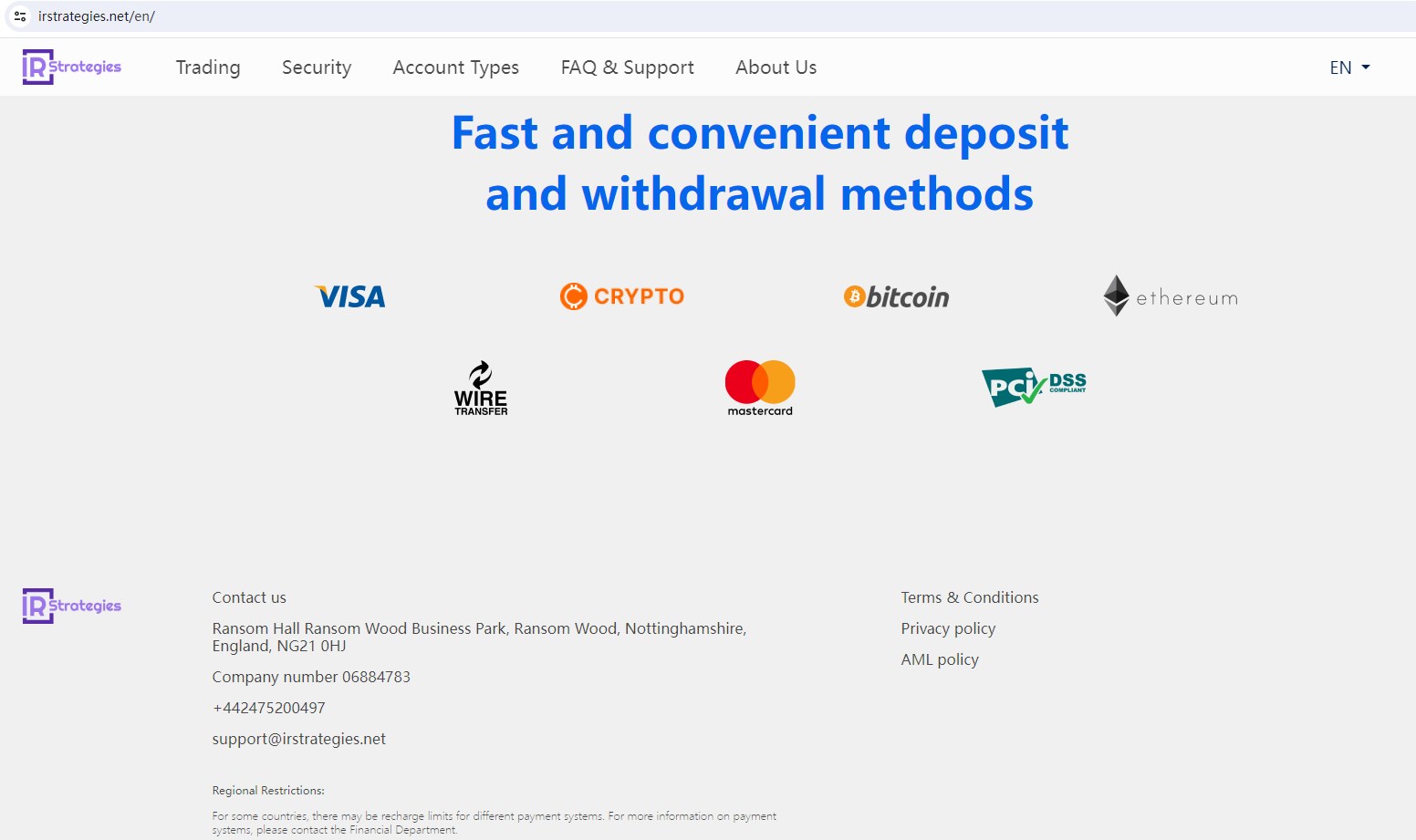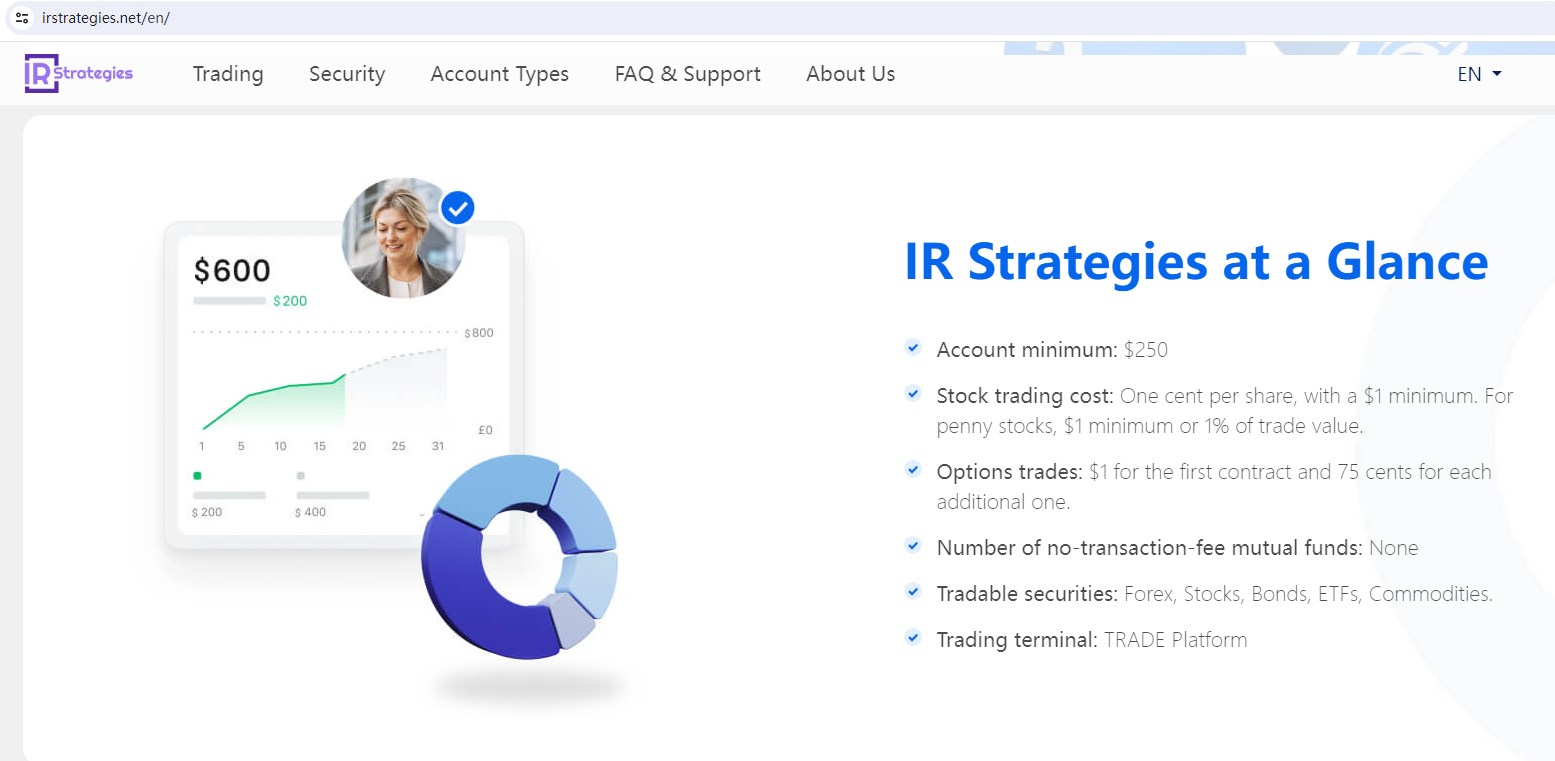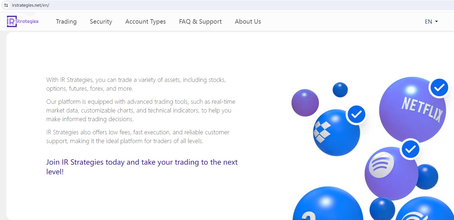 IR Strategies claims to be a online trading broker located in the UK, Offering Wide range of financial services, including stocks, options, futures, forex, and more instruments in global markets.