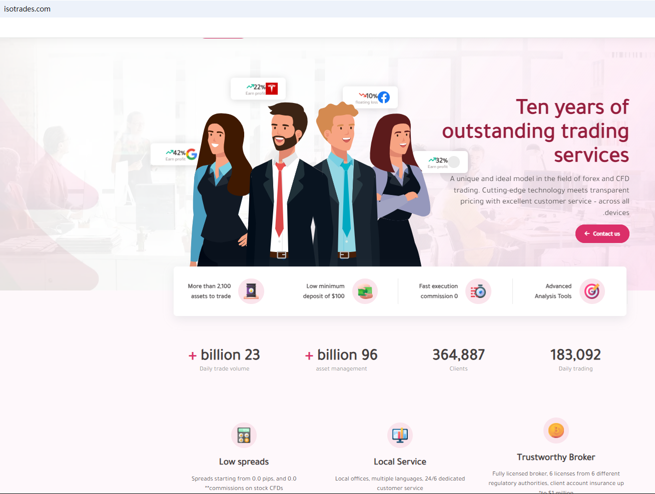 BrokersView found that the domain "https://www.isotrades.com/" is currently inaccessible. This is widely regarded as a significant red flag, as the suspension of a broker's website often points to underlying regulatory or operational issues.