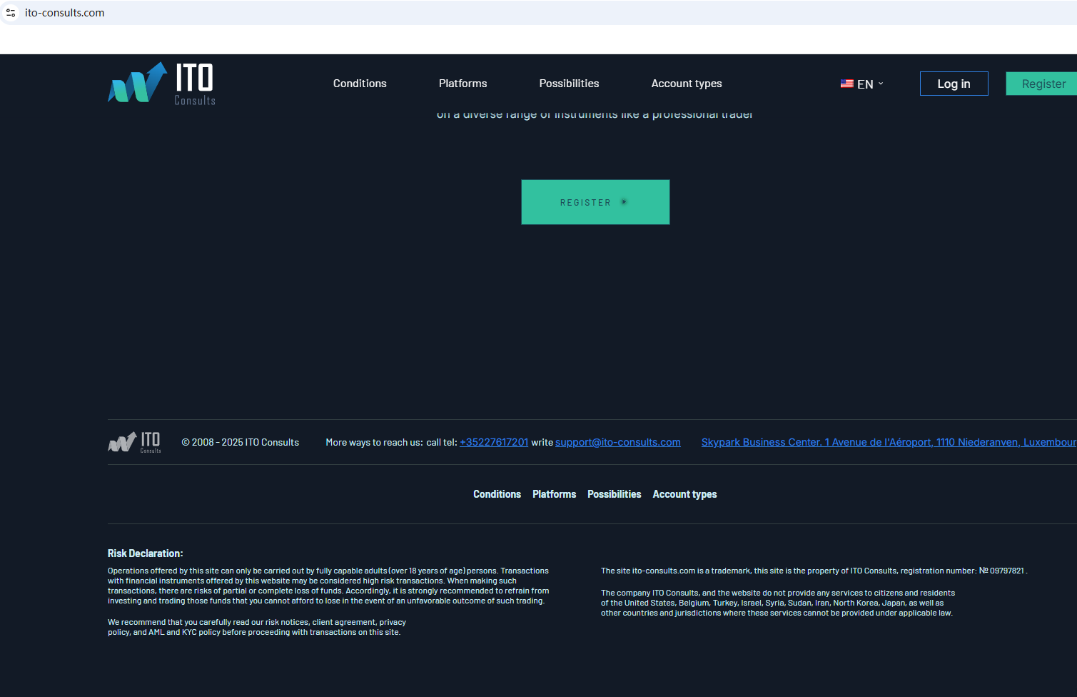 According to its website, it claims to be a reliable company, but it does not display any valid regulatory information on its website, and it does not even publish the most basic office address, which is a very untrustworthy practice. In addition, the Federal Financial Supervisory Authority (BaFin) issued a warning against ITO Consults for lacking the required authorization.