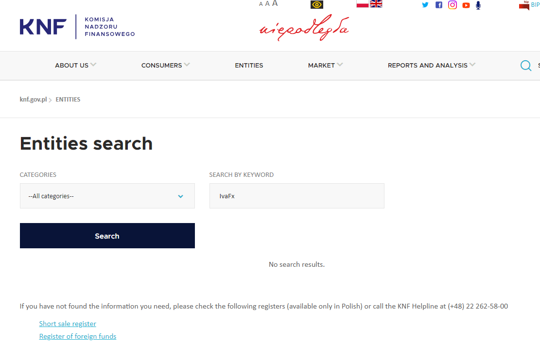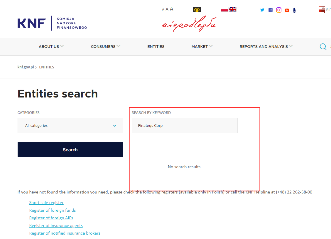 In addition, it claims that regulated by Polish Financial Supervision Authority (FSA), upon investigation, there is no matching information was found in the FSA.