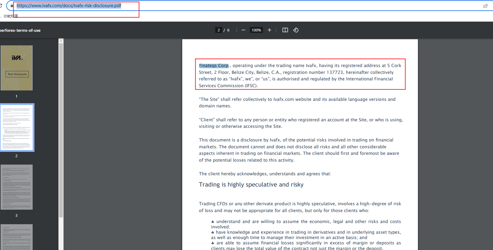 However, records from the Belize FSC suggested that Finateqs Corp has its own registered website and company address, which are inconsistent with the information provided by IvaFx. IvaFx is likely misusing details of another entity, which has nothing to do with it, to create the illusion of legitimacy.