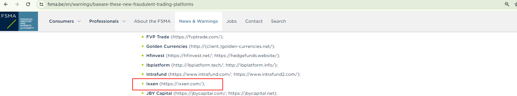 On March 14, 2024, the Belgian Financial Services and Markets Authority (FSMA) added Ixxen to its warning list as a fraudulent trading platform. https://www.fsma.be/en/warnings/baware-these-new-fraudulent-trading-platforms