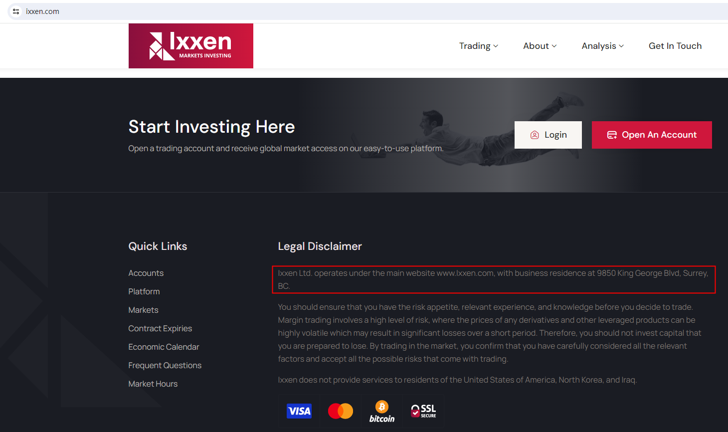 Ixxen claims to be a reliable company without presenting any information about its regulation.