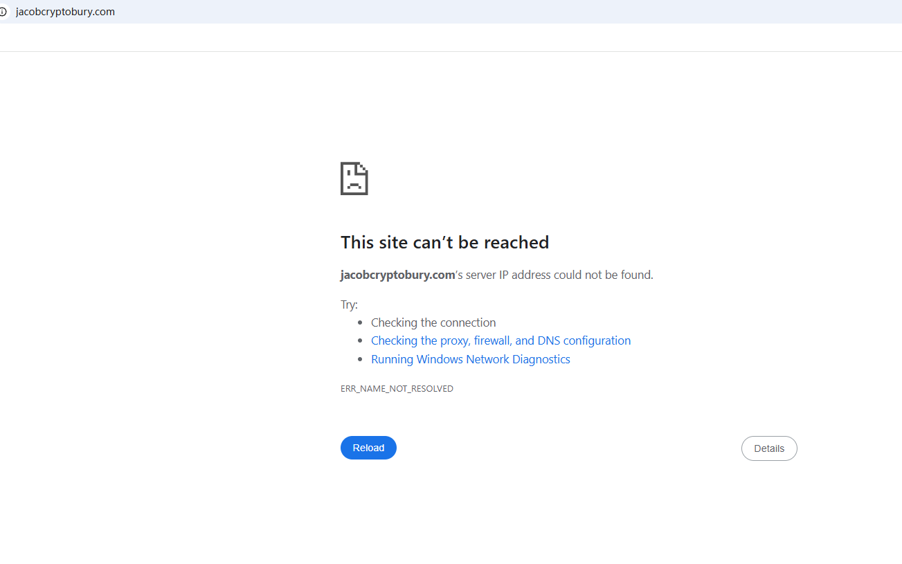BrokersView found that the domain "https://jacobcryptobury.com/" is currently inaccessible. This is widely regarded as a significant red flag, as the suspension of a broker's website often points to underlying regulatory or operational issues.