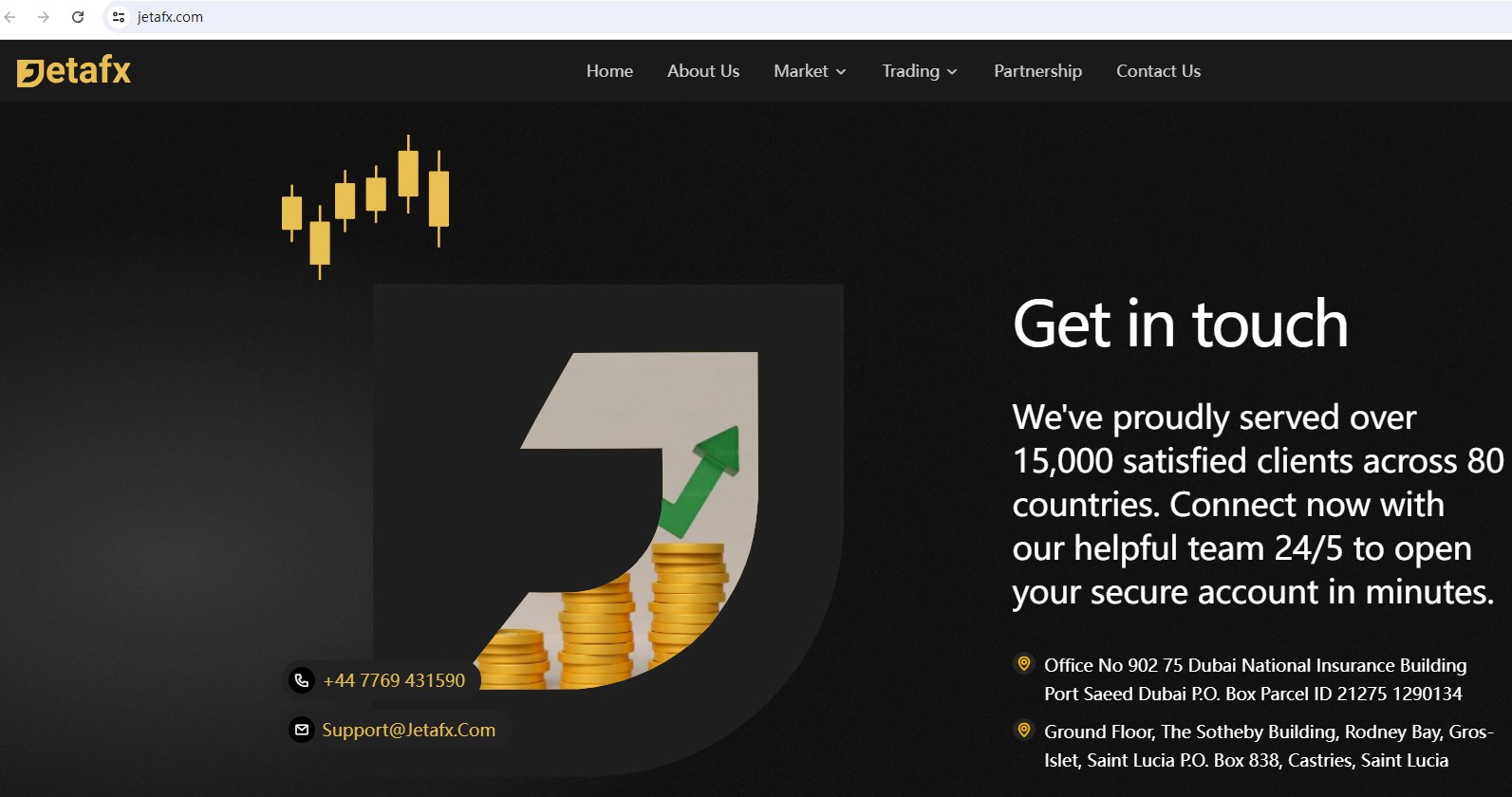 Jetafx (Jeta Fx Limited) claims to be a regulated ECN/STP broker together with offices in Dubai and Saint Lucia, offering wide range of financial services, including Forex, Indices, Stocks, Commodities, Future and more instruments in global markets. But there is no detailed financial services licenses and other licensing certificates. A company that offers financial services must have financial license in the country where it is located.