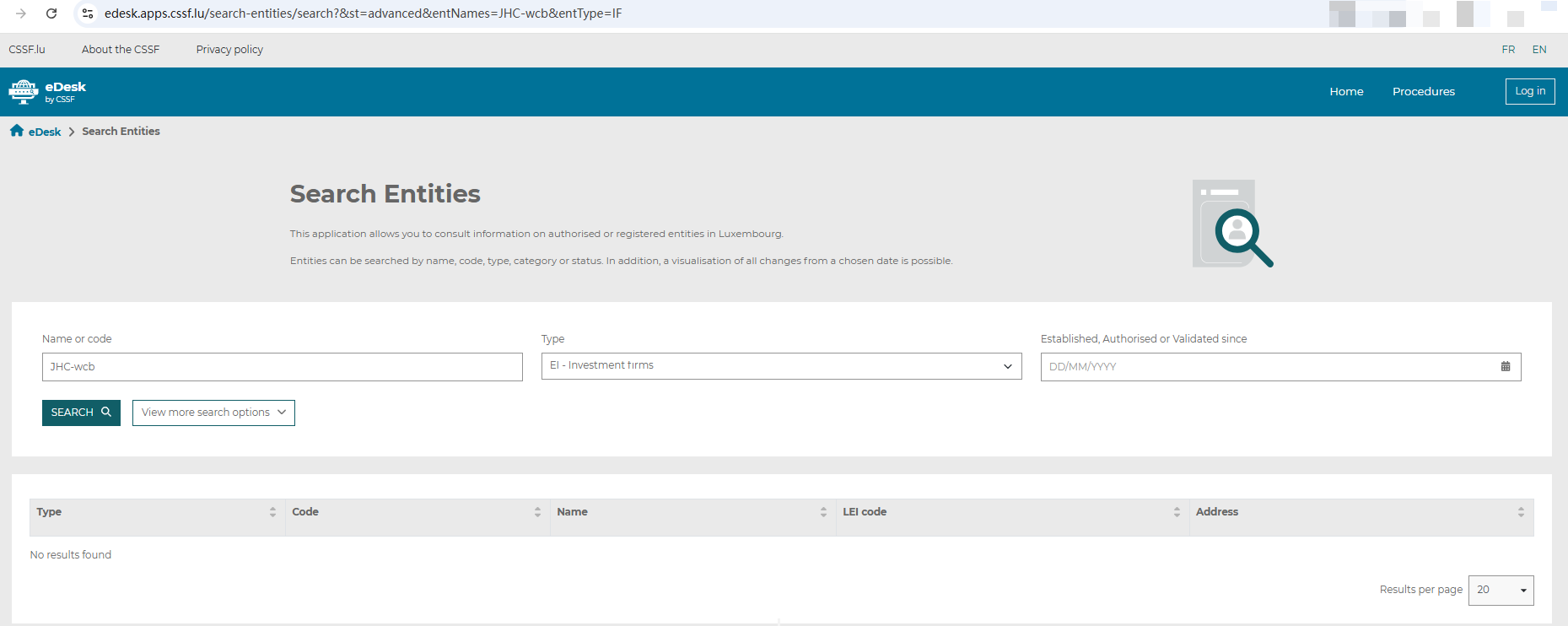 Upon investigation, we found that JHC-wcb is not regulated by the Commission de Surveillance du Secteur Financier (CSSF) in Luxembourg.