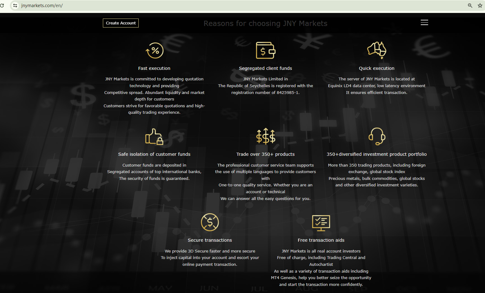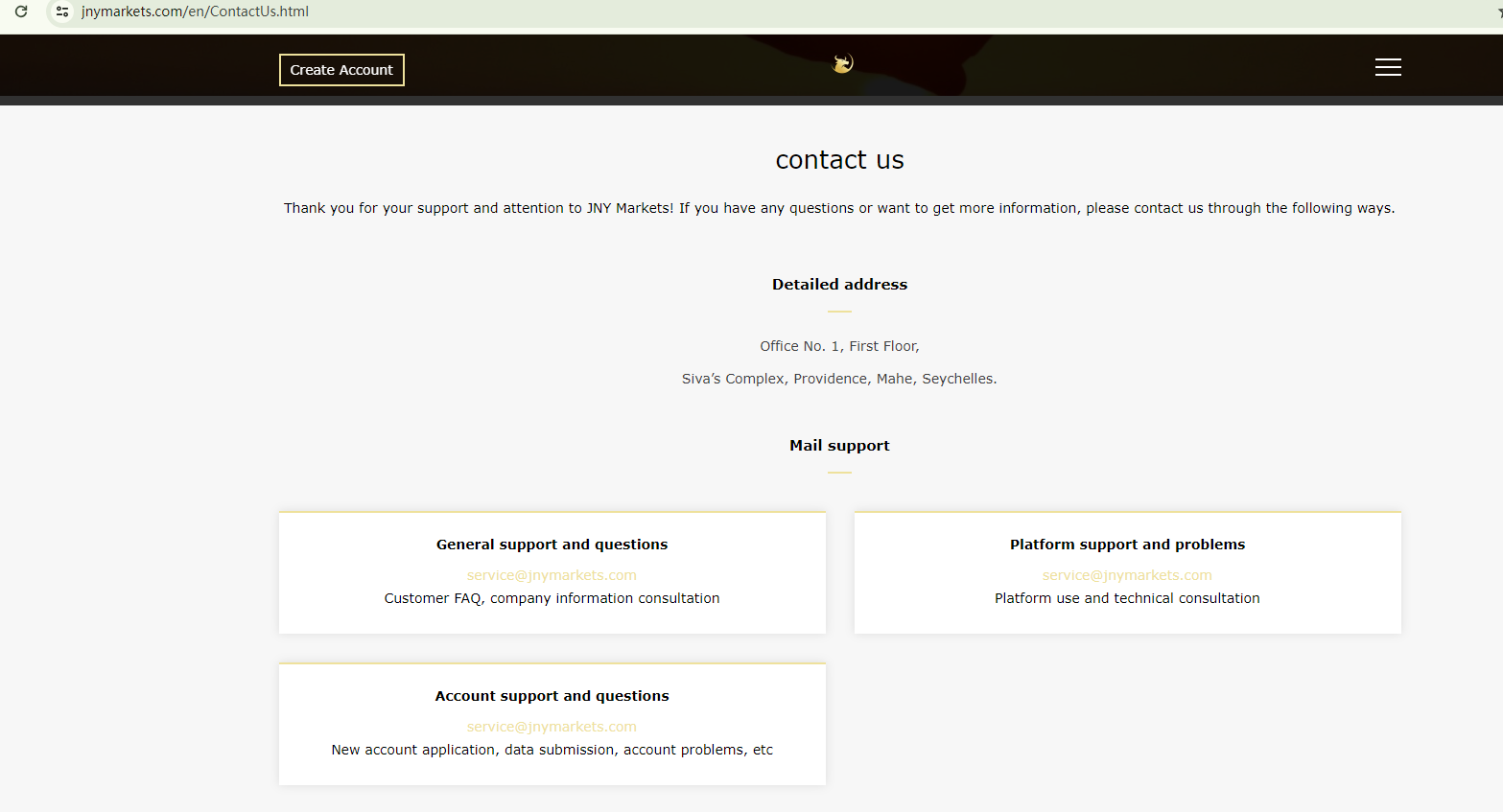 BrokersView found that the domain "https://www.jnymarkets.com/en/" is currently inaccessible. This is widely regarded as a significant red flag, as the suspension of a broker's website often points to underlying regulatory or operational issues.