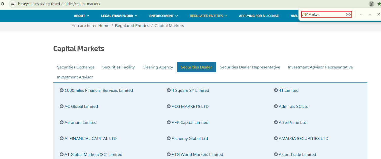 Nonetheless, our investigation into the FSA Seychelles register contradicts these claims, as we found no entries corresponding to this company. This discrepancy raises questions about the legitimacy of JNY Markets.
