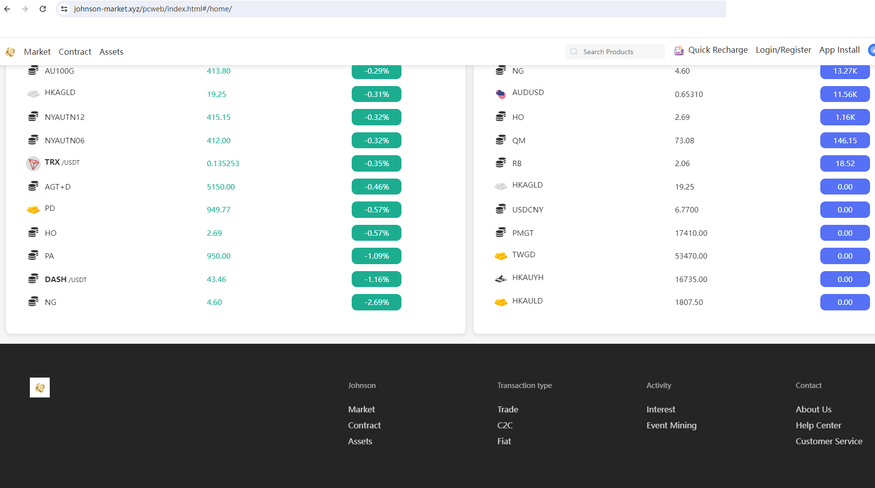 Website: https://www.johnson-market.xyz/pcweb/index.html#/home/