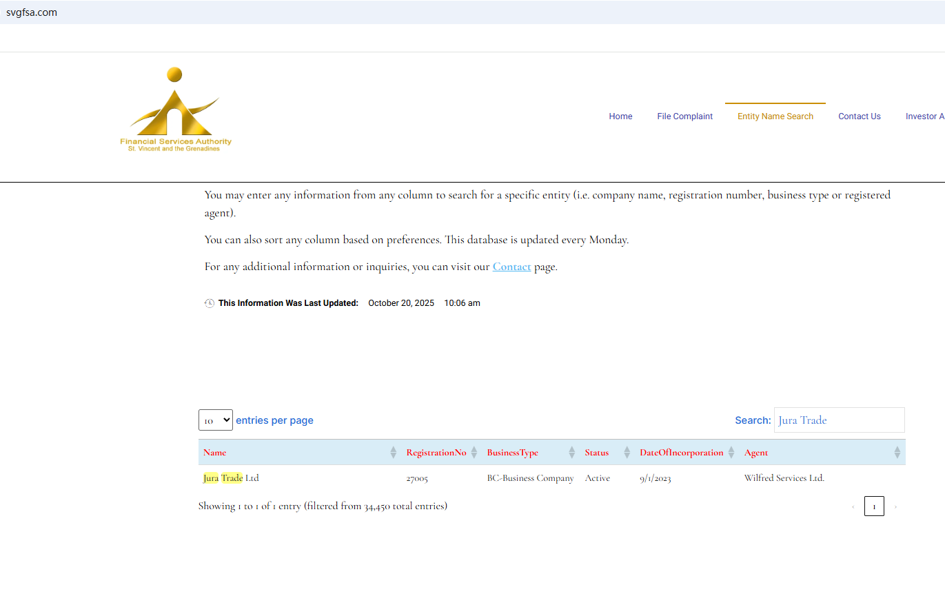BrokersView found that the domain "https://juratrade.com/" is currently inaccessible. Jura Trade previously claimed to be registered with the St. Vincent and the Grenadines Financial Services Authority (SVG FSA). While this registration remains valid, the SVG FSA does not have the authority to regulate forex and does not constitute a valid forex license. Furthermore, Stepup Group Corp does not appear to be authorized by any reputable financial regulator, raising serious concerns about potential fraud.