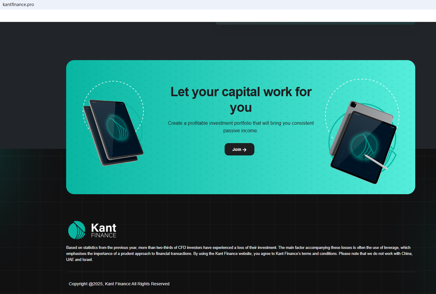 In essence, Kant Finance is not regulated by any governing body. Entrusting it with investors' funds is highly risky, as there are no legal protections in place to safeguard the funds. Kant Finance appears to be a scam.