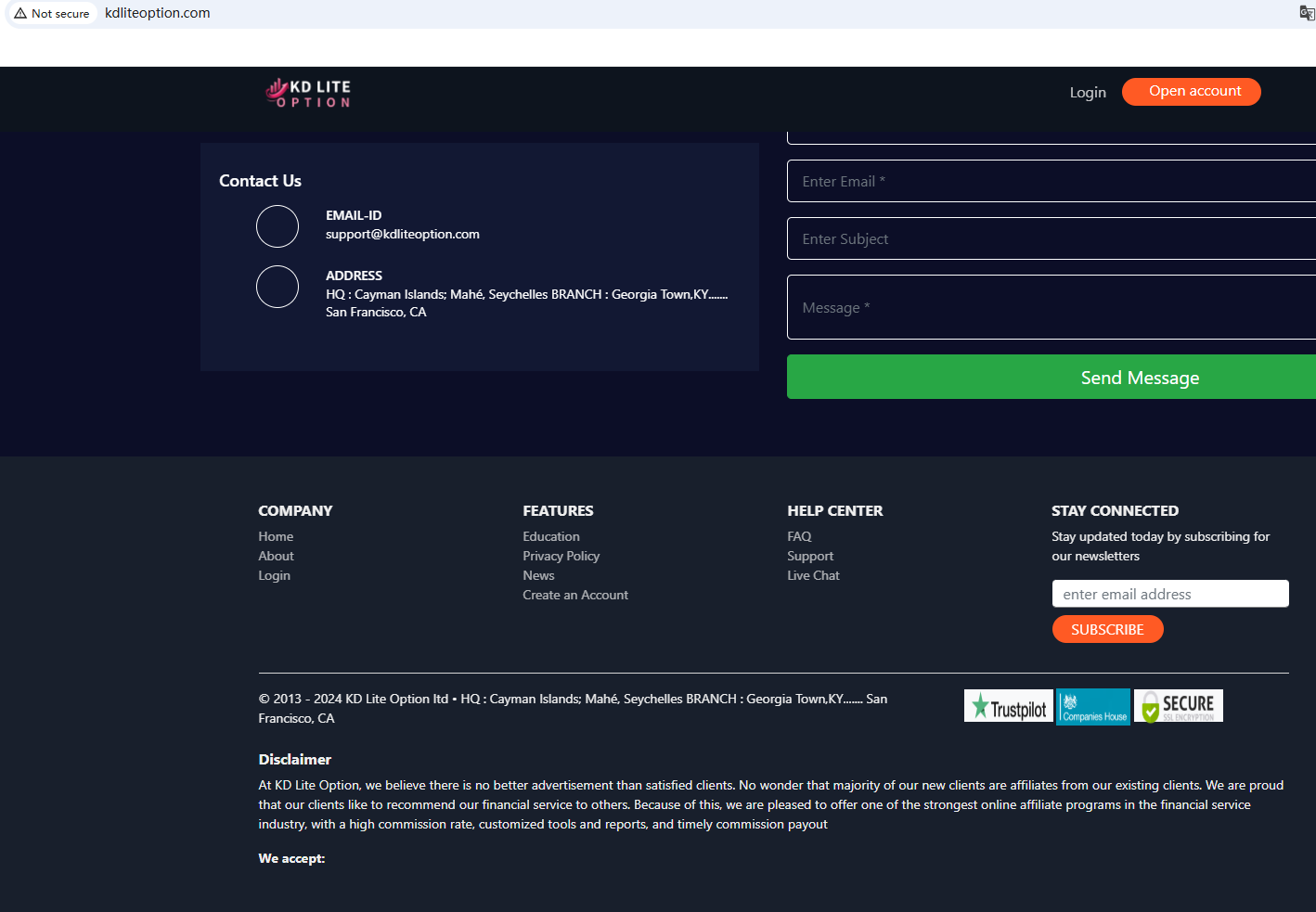 The website uses a common template for scam websites. They have the same website design and wording, and even the same office address, which has been marked by Brokersview before, for example, Elite Max Trade. Based on its address, we checked the relevant regulatory authorities. We did not find any matching information in the Cayman Islands Monetary Authority (CIMA), the National Futures Association (NFA), or the Seychelles Financial Services Authority (FSA Seychelles).