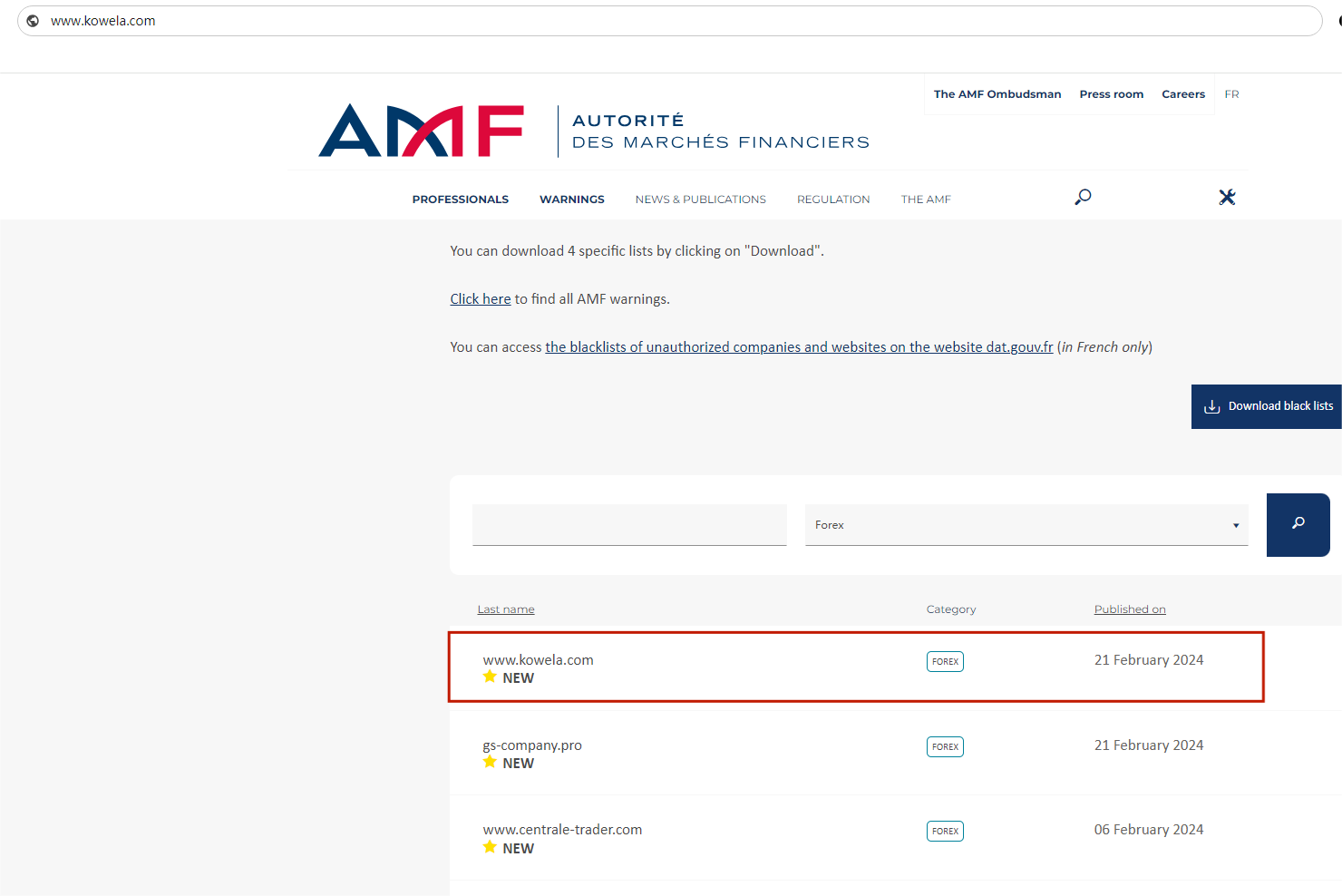 On 21 February, 2024, the Financial Authority (Autorité des Marchés Financiers, AMF) added kowela to warning list for it being an unauthorized company engaging in forex activities. https://www.amf-france.org/en/warnings/blacklists?page=0&conditions%5Bcategorie%5D=224