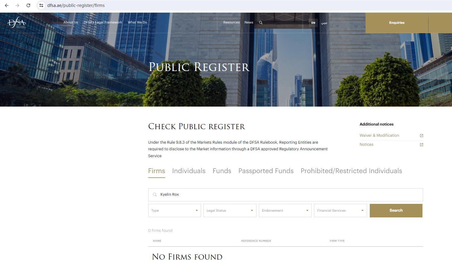 But our search of the DFSA, CFTC, FCA and CySEC yielded no results.