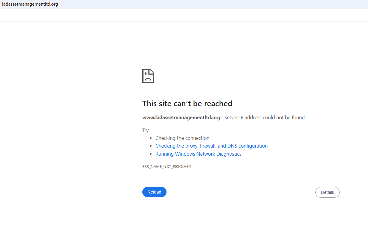 BrokersView found that the domain "https://www.ladassetmanagementltd.org/" is currently inaccessible. This is widely regarded as a significant red flag, as the suspension of a broker's website often points to underlying regulatory or operational issues.