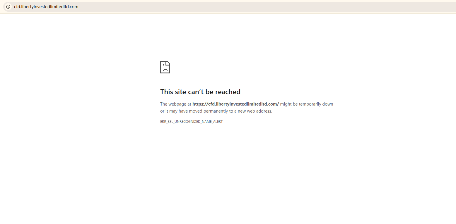 BrokersView found that the domain "https://libertyinvestedlimitedltd.com/;https://cfd.libertyinvestedlimitedltd.com/" are currently inaccessible. This is widely regarded as a significant red flag, as the suspension of a broker's website often points to underlying regulatory or operational issues.