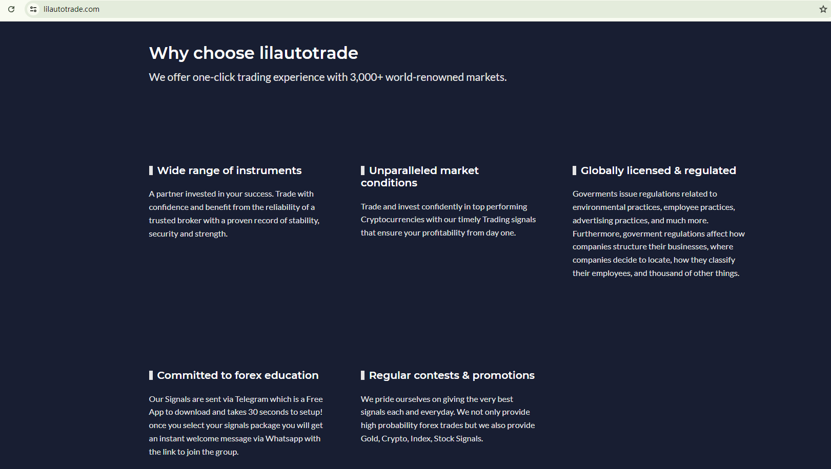 LILAUTO TRADE's website utilizes a template frequently linked to fraudulent schemes, which offers prewritten content and simple graphics for rapid, seemingly professional site creation.