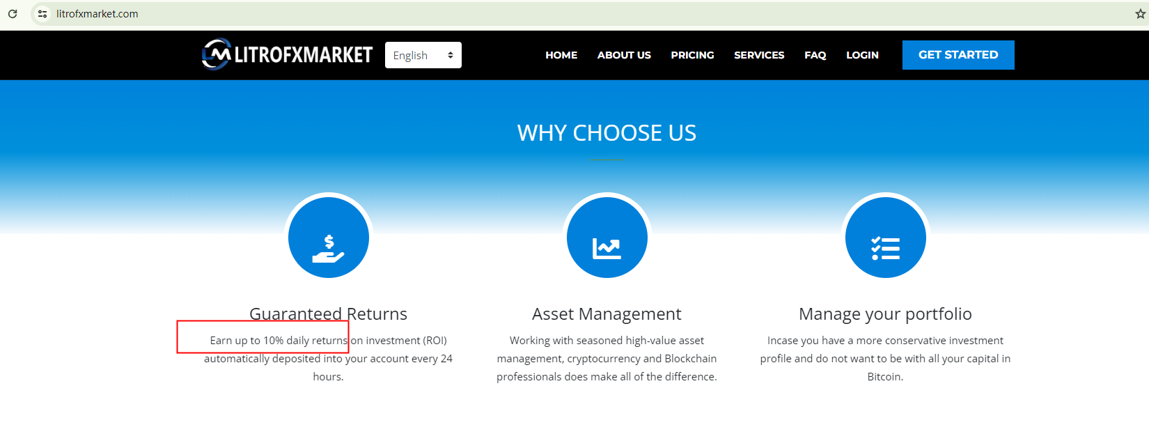 On its homepage, the company promises a Return on Investment (ROI) of up to 10%, a claim that could be seen as a red flag. Generally, investment activities inherently carry substantial risks due to market volatility and liquidity. The potential earnings in the market largely depend on the investors' knowledge and trading skills. While a trading platform can create a transparent trading environment, offer bonuses, or provide trading tools to facilitate trading, it's nearly impossible to guarantee profits. If a trading platform makes such promises, investors should be immediately alarmed as it may be a ploy to ensnare them.