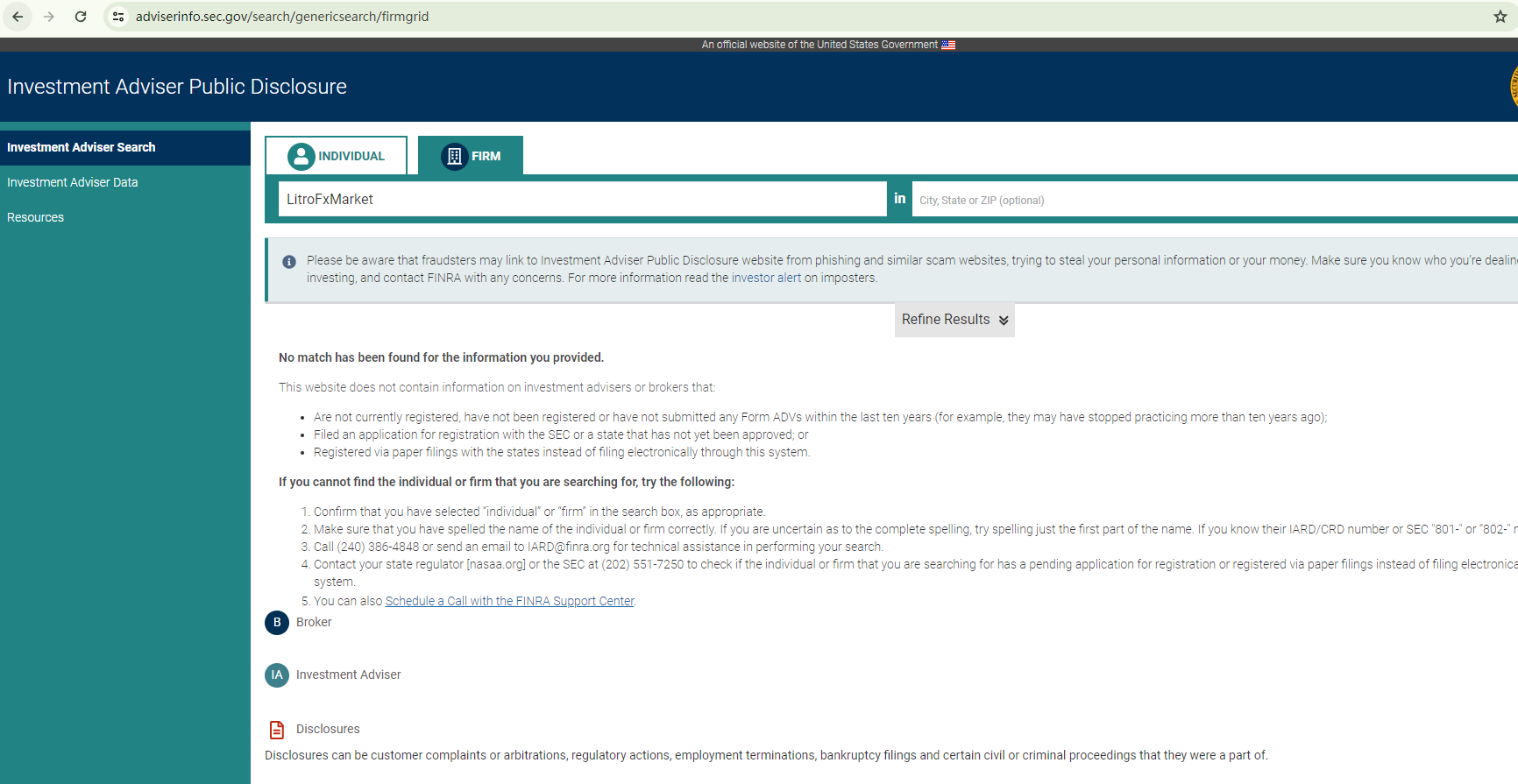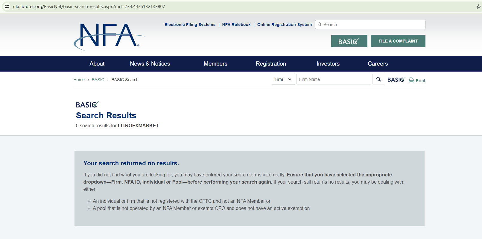 In essence, LitroFxMarket is not regulated by any governing body. Entrusting it with investors' funds is highly risky, as there are no legal protections in place to safeguard the funds.