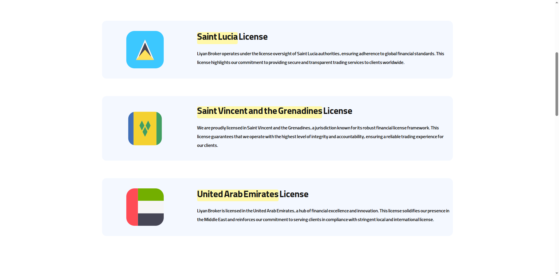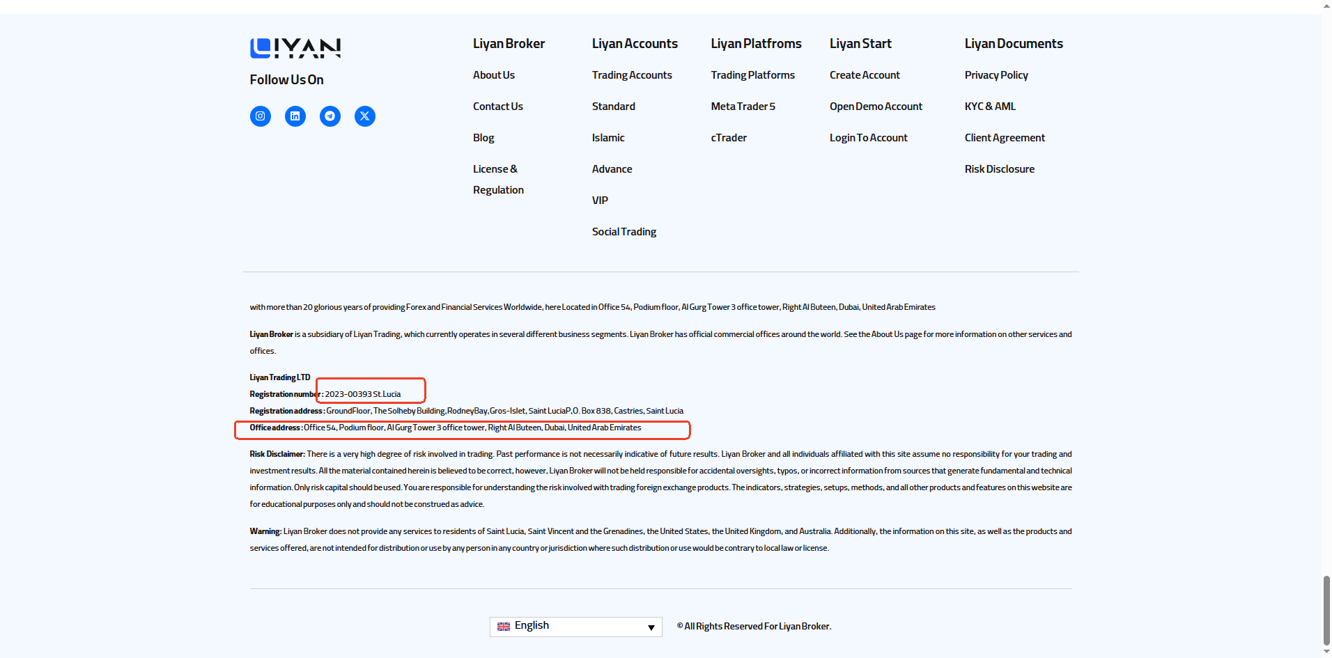 Liyan Broker claims regulatory oversight in Saint Lucia, Saint Vincent, and the UAE, but our investigation reveals these claims to be misleading or false. While Liyan Trading LTD and Liyan Trading LLC are registered as an International Business Company (IBC) in Saint Lucia and Saint Vincent, neither jurisdiction’s authority regulates forex activities, making the assertion of being "regulated" highly deceptive. Furthermore, despite claiming UAE regulation and a Dubai office, no record of Liyan Broker exists with the UAE’s primary financial regulators—the Securities and Commodities Authority (SCA) or the Dubai Financial Services Authority (DFSA). These discrepancies strongly suggest that Liyan Broker is falsely representing its regulatory status to gain investor trust, a hallmark of fraudulent operations.