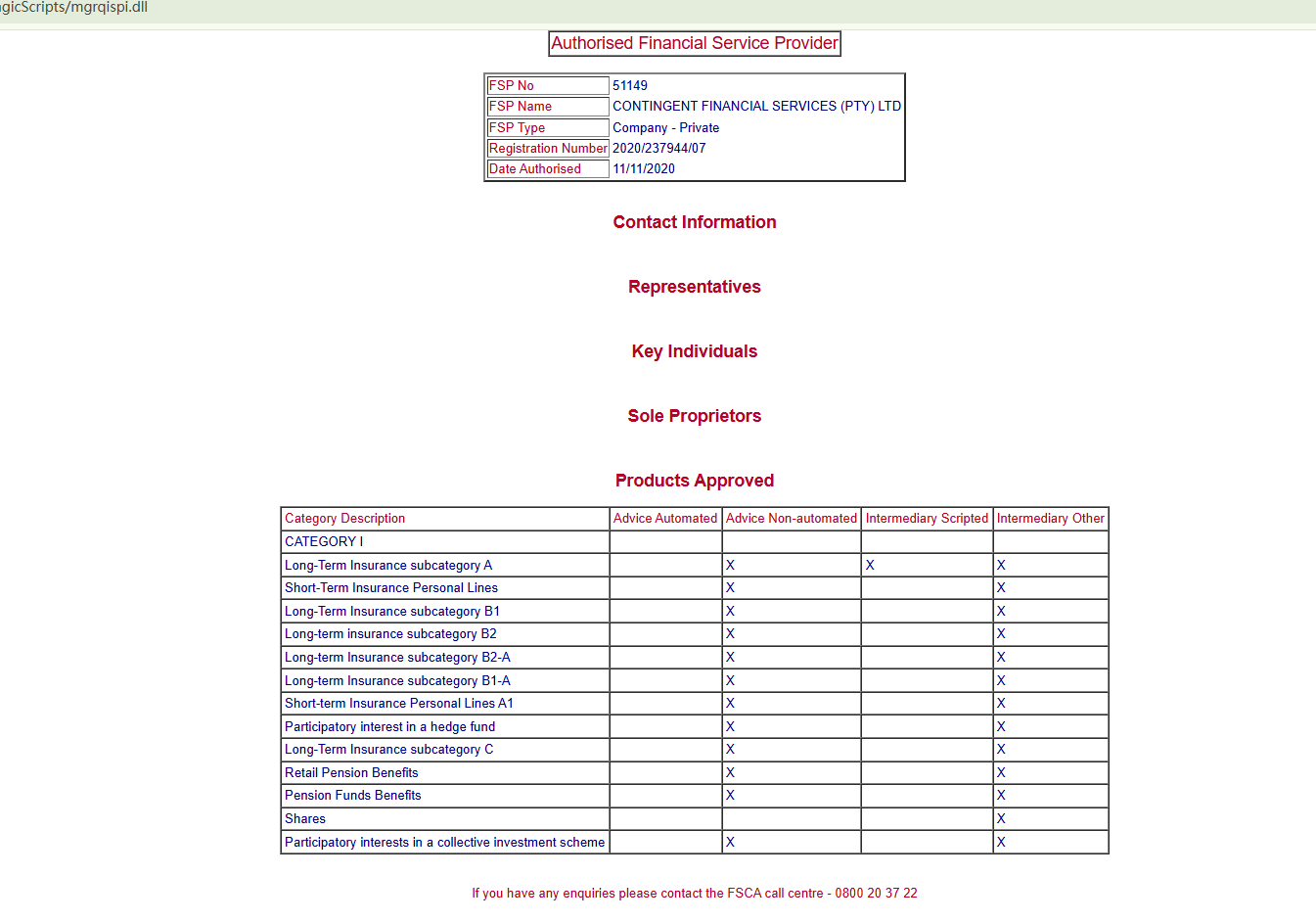 LotCapitals claims to be owned by Contingent Financial Services (Pty) Ltd, a company licensed by South Africa’s Financial Sector Conduct Authority (FSCA) under license number FSP51149. While this entity does appear on the FSCA register as a licensed financial services provider, there are serious concerns.