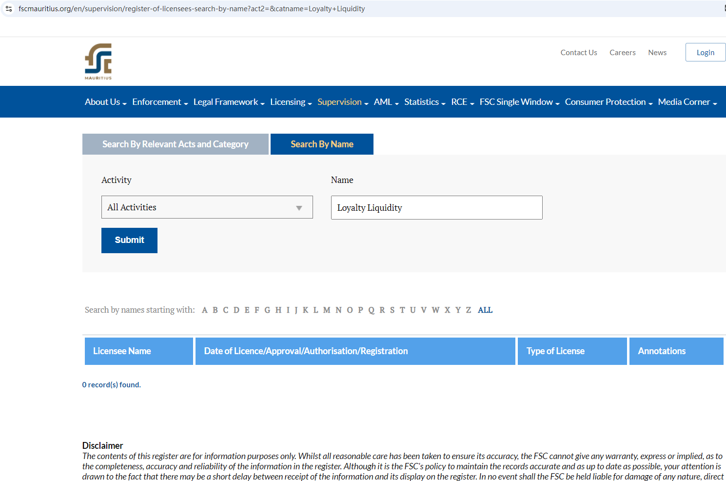Therefore, Loyalty Liquidity Limited is not regulated at all. Entrusting it with investors' funds is highly risky, as there are no legal protections in place to safeguard the funds.