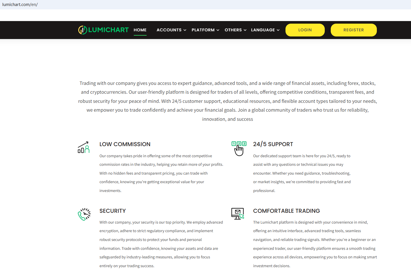 BrokersView found that the domain "https://lumichart.com/en/" is currently inaccessible. This is widely regarded as a significant red flag, as the suspension of a broker's website often points to underlying regulatory or operational issues.