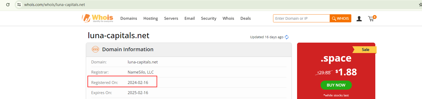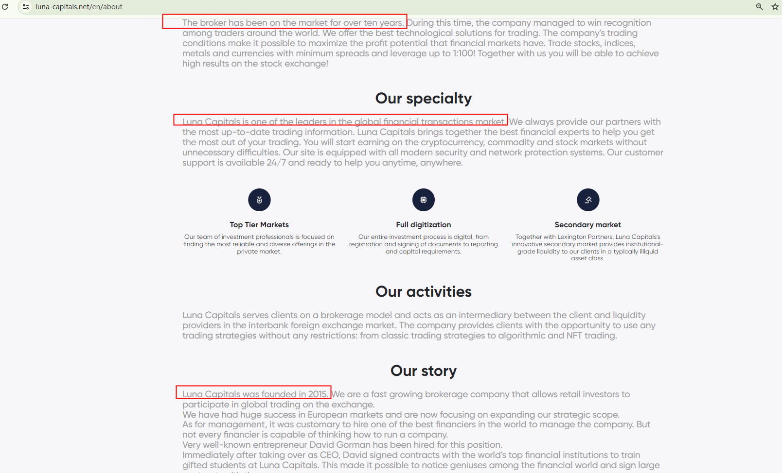 Luna Capitals asserts that it has been operating in the market for over a decade since its establishment in 2015. However, the recent registration of its domain name in February 2024 contradicts this claim, casting a shadow on its credibility.