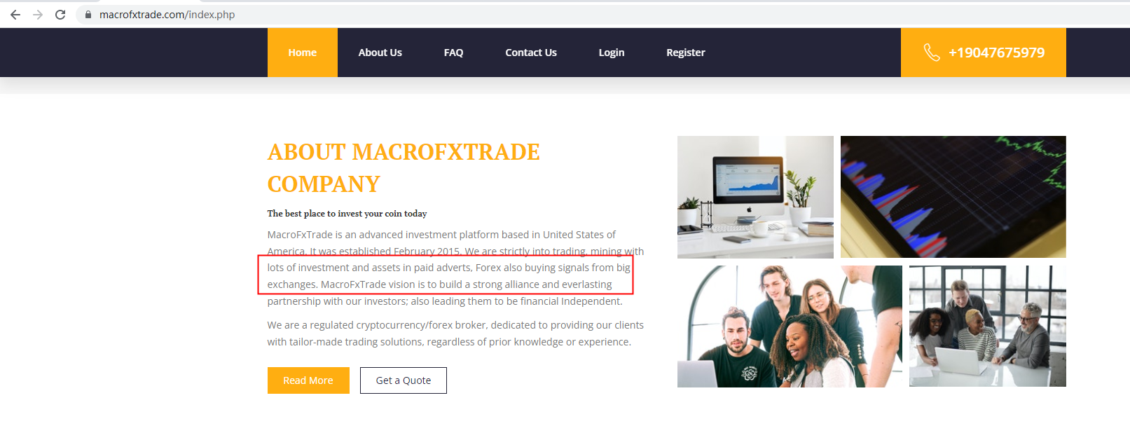 MacroFxTrade claims to be a legal investment company incorporated in the United States. We searched the National Futures Association (NFA) and don't find any results matching to MacroFxTrade. The truth is that MacroFxTrade is not under valid regulation by any regulators to do forex. Investors' funds in this broker are unsafe and cannot be protected by any law.