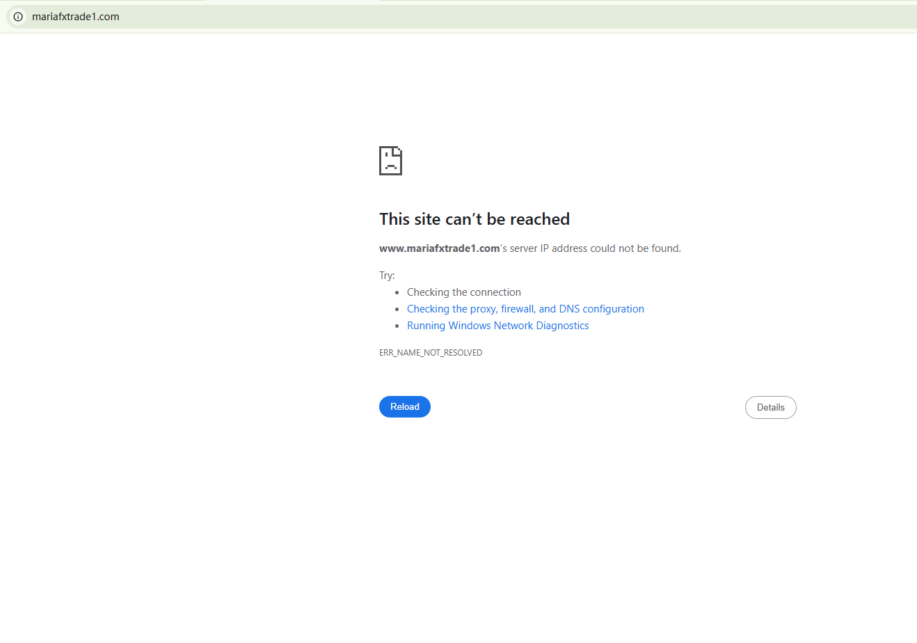 BrokersView found that the domain "https://www.mariafxtrade1.com/" is currently inaccessible. This is widely regarded as a significant red flag, as the suspension of a broker's website often points to underlying regulatory or operational issues.